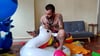 Give to Matty somme inflatable toys and a knife and this is what happen.