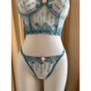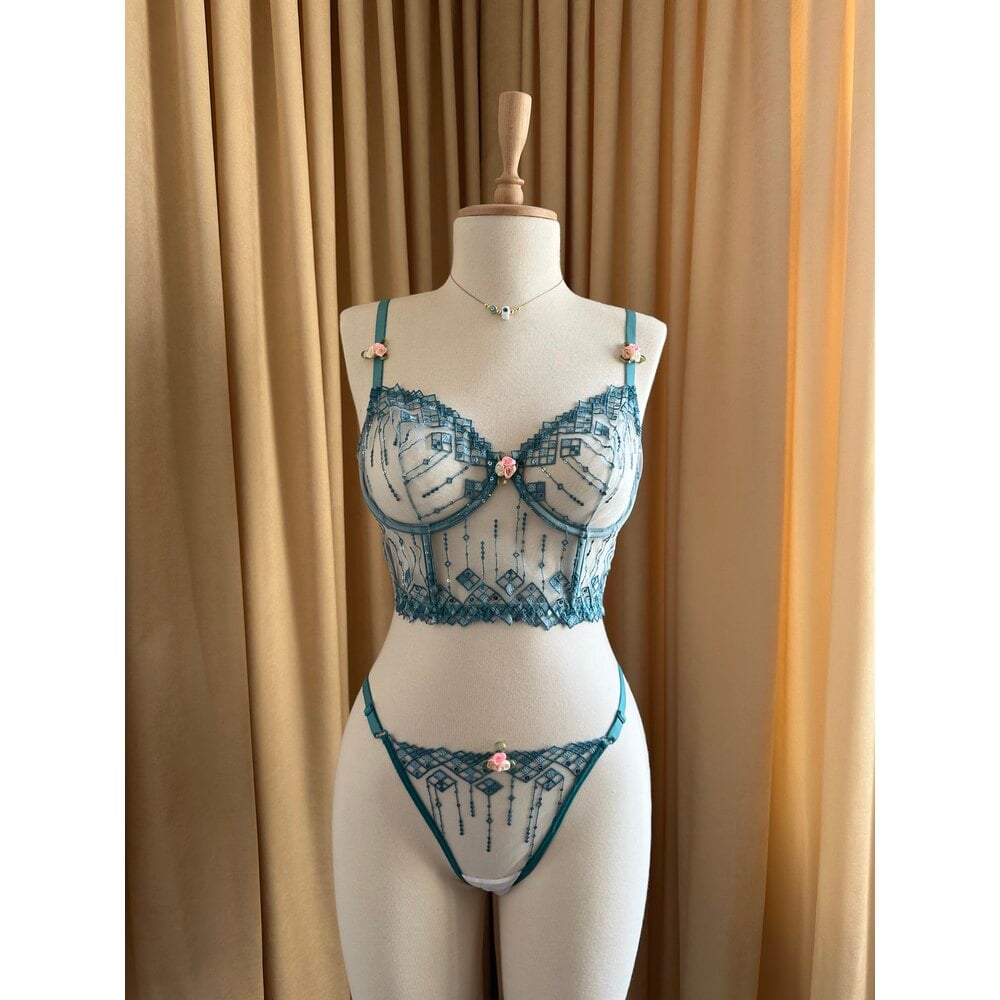 A luxurious design that blends sheer elegance with intricate geometric embroidery, finished with delicate pink floral accents for a touch of dreamy femininity ๐โจ