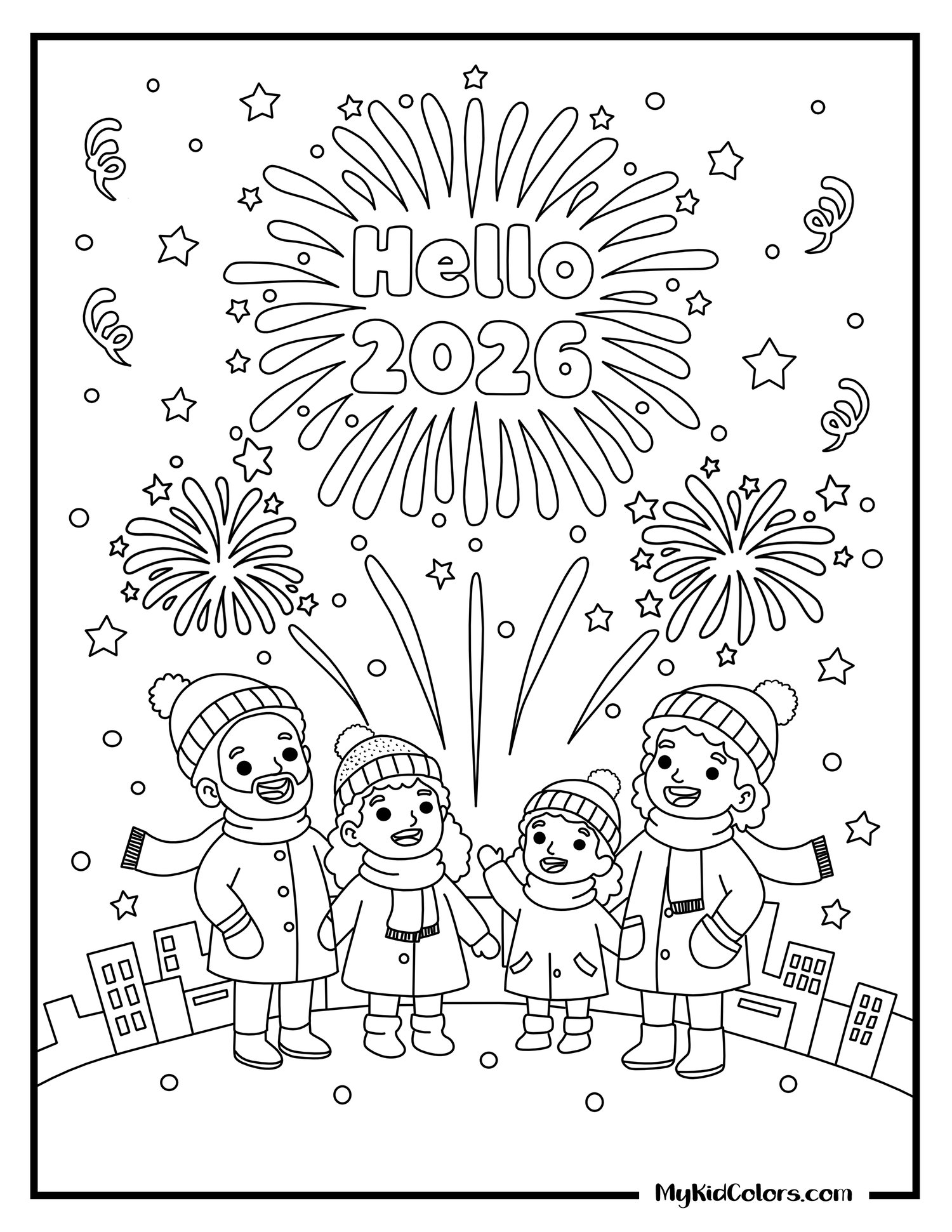 Perfect for classrooms, home activities, New Year crafts, and screen-free fun, this set includes 15 printable coloring pages featuring fireworks, festive celebrations, night skies, and child-friendly New Year scenes.
