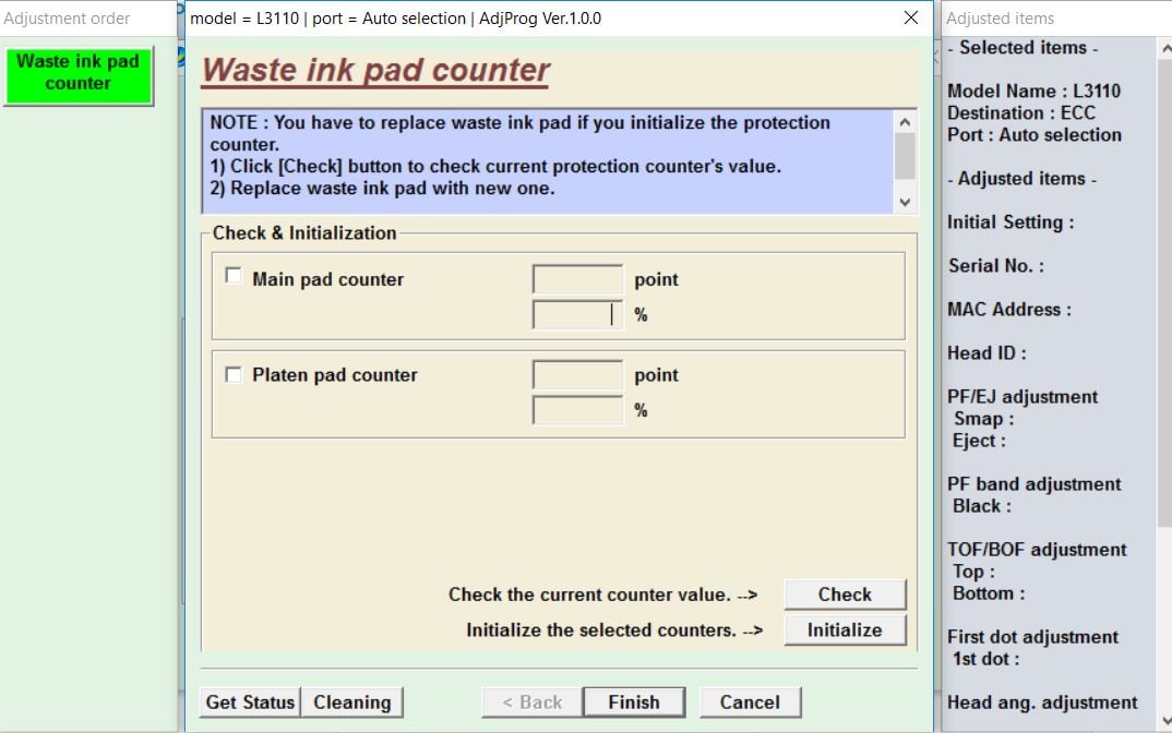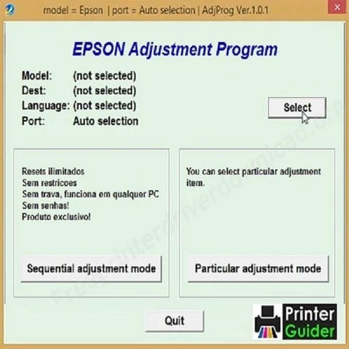 In the extracted folder, run the program file named "Adjprog." The software should automatically read your Epson printer connected.