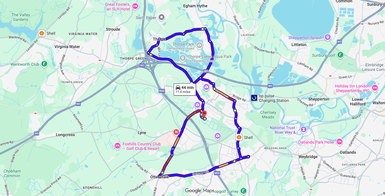 Practise real driving test routes in Chertsey(london)before your exam – open directly in Google Maps