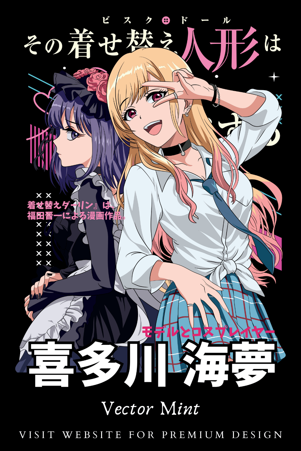 My Dress Up Darling Marin Kitagawa Anime Streetwear T Shirt Design PNG Waifu Cosplay Manga Graphic Premium Style