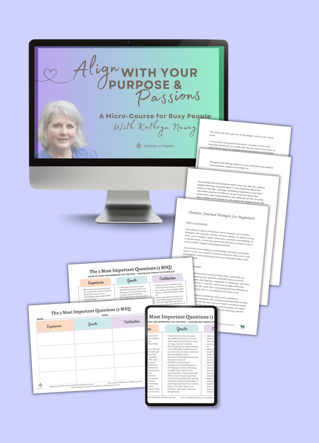 Through a short explainer video and a beautifully guided exercise (the 3 MIQs worksheet), you’ll: