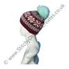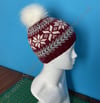 Method: This stranded colorwork hat is knit in the round from the brim up. Featuring easy to memorise snowflake and “wind” patterns it can be worked in three or more contrasting colors and topped off with a fluffy pompom.