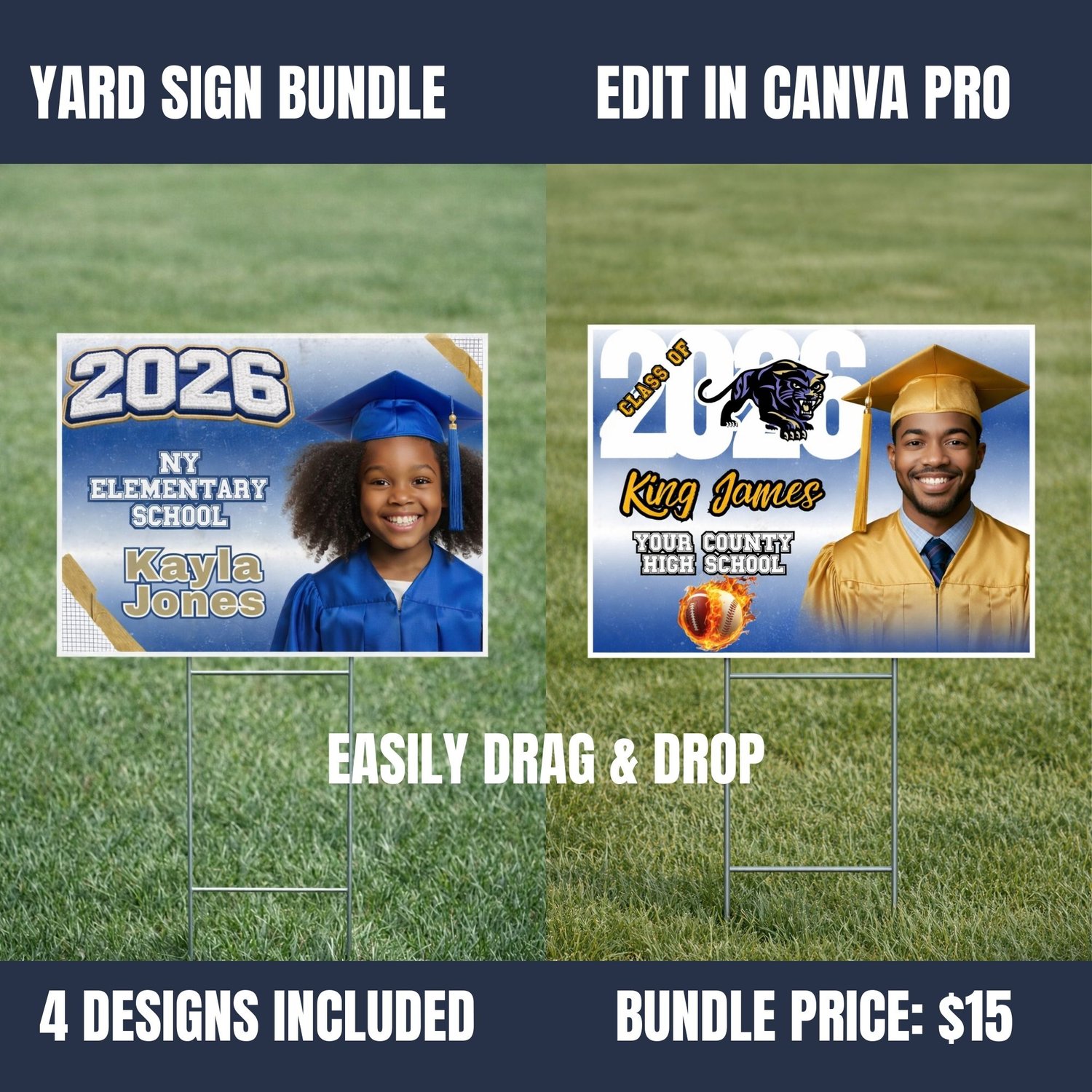 Graduation Yard Sign Canva Bundle – 4 Editable Designs