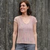 Knot Again is worked sideways. The left-hand armhole is cast on first, followed by the stitches for the left-hand side of the body. Short row shaping is worked into the side of the body to either extend the shoulder length or the chest circumference (depending on your chosen size). The left-hand shoulder is worked flat, with three increase rows to optimise fit and featuring textured sections called Elongated Herringbone Panels. Once the shoulder has been worked, stitches are separated into back and front and each are worked separately. Front and back are re-joined to form the right-hand shoulder, which is worked as a mirror-image of the left-hand shoulder. Stitches are picked up around the neckhole and armholes to add I-Cords and around the waist to add a twisted rib.