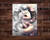 Baby Flower Dragon Fantasy Coloring Page Book, Adults + kids- Instant Download - Grayscale Coloring Page, Printable PDF, Dragons coloring,
