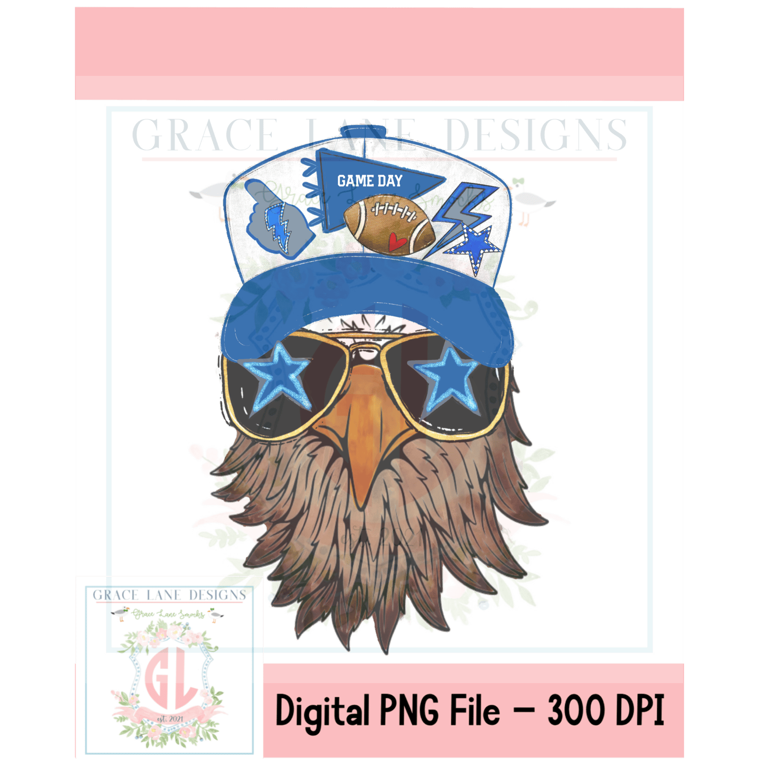BLUE GRAY EAGLES Trucker Hat png Hand Drawn Procreate Digital Download Tailgate Football Game Cheerleader