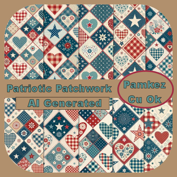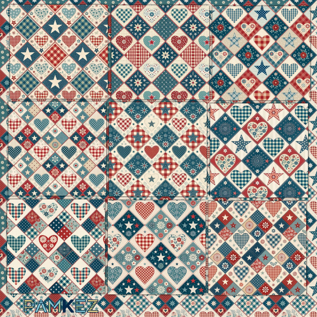 Celebrate your creative freedom with this charming "Patriotic Patchwork" digital paper pack! This cozy, Americana-style collection features an array of heartwarming patchwork patterns in classic red, white, and blue tones — perfect for Independence Day crafts, vintage summer scrapbooking, handmade cards, or any star-spangled creative project!