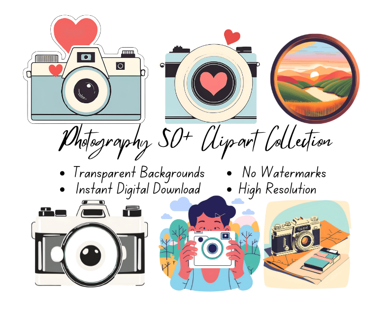Photography 50+ Clipart Collection | High-Resolution Digital Printables | Instant Download | No Watermark