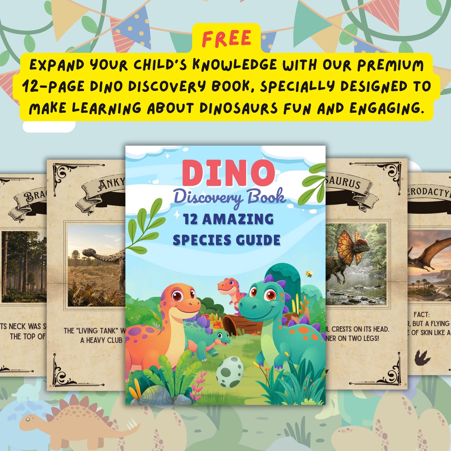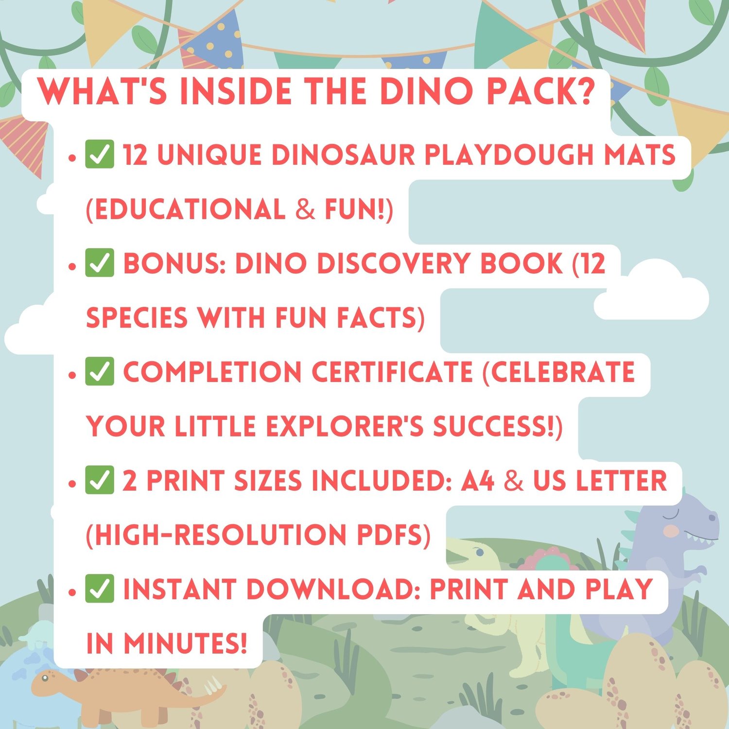 - BONUS Dino Discovery Book: A 12-page guide filled with fun facts about each dinosaur species!