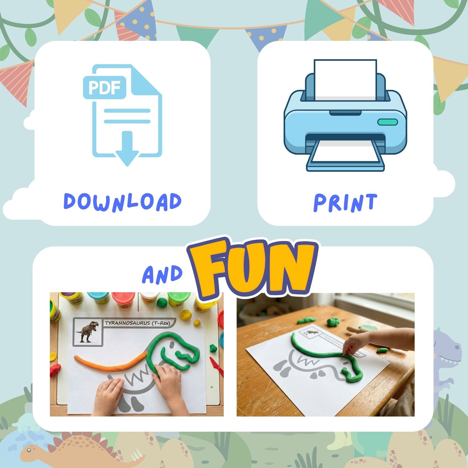 Looking for a fun, hands-on way to help your little explorer develop fine motor skills and learn about dinosaurs? Our Dinosaur Playdough Mats Bundle is the perfect screen-free activity for toddlers and preschoolers!