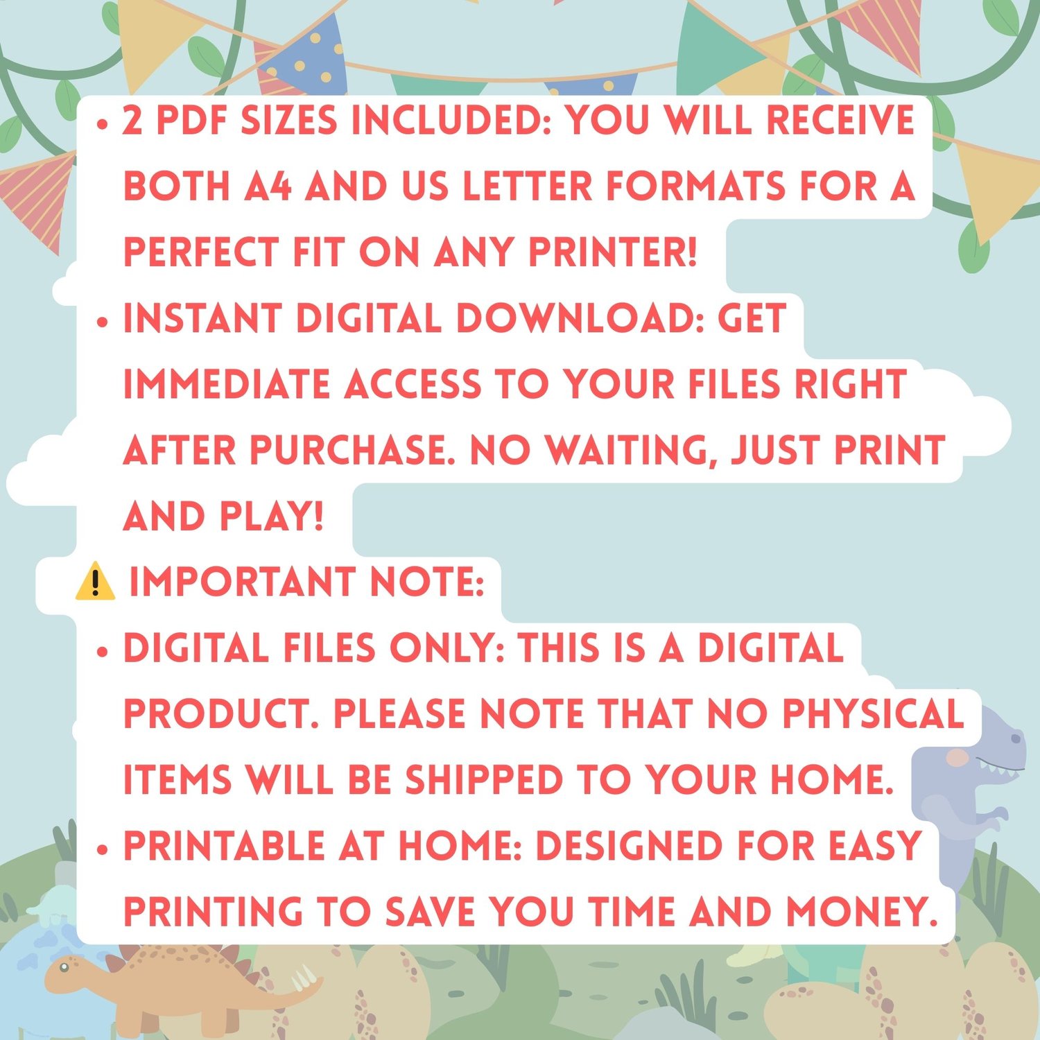 - This is a Digital Product only. No physical items will be shipped to your home.