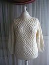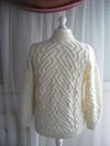 This jumper was knitted following my new invent named "Floating Cables", to replace by them the classic cables and to present the sample organization of the FC motifs. The jumper has low sleeve, is a little bit oversized and ultra light and warm, due to material used. Unisex. The pattern is symmetric - right/left sleeve is matching to the right/left side