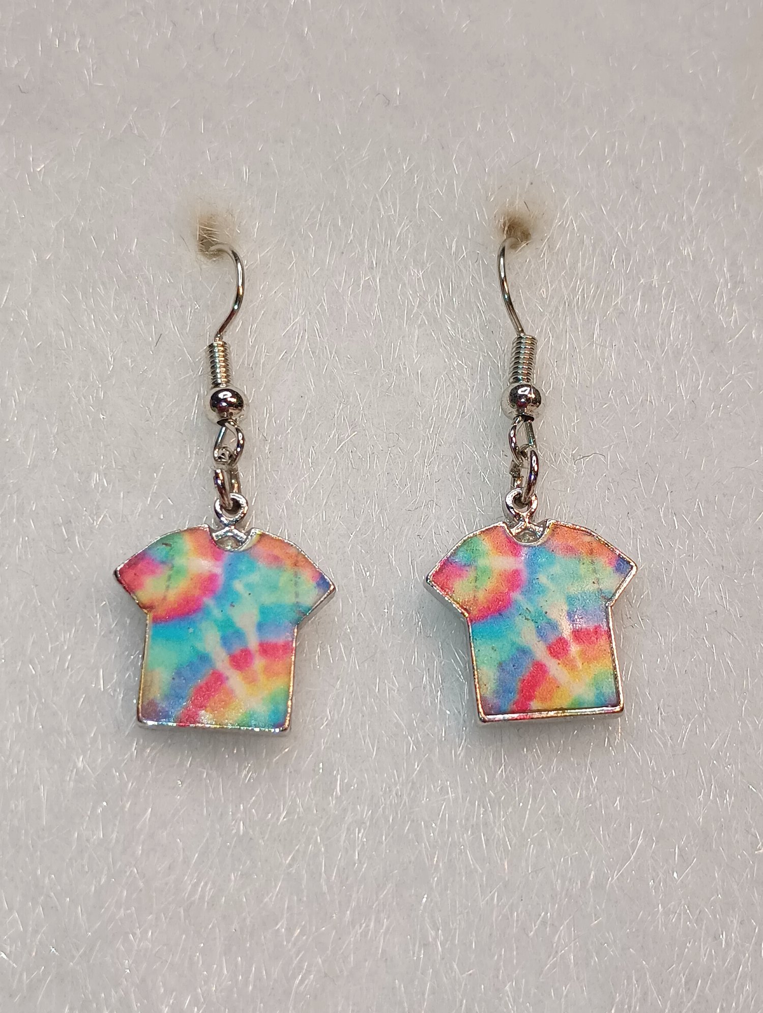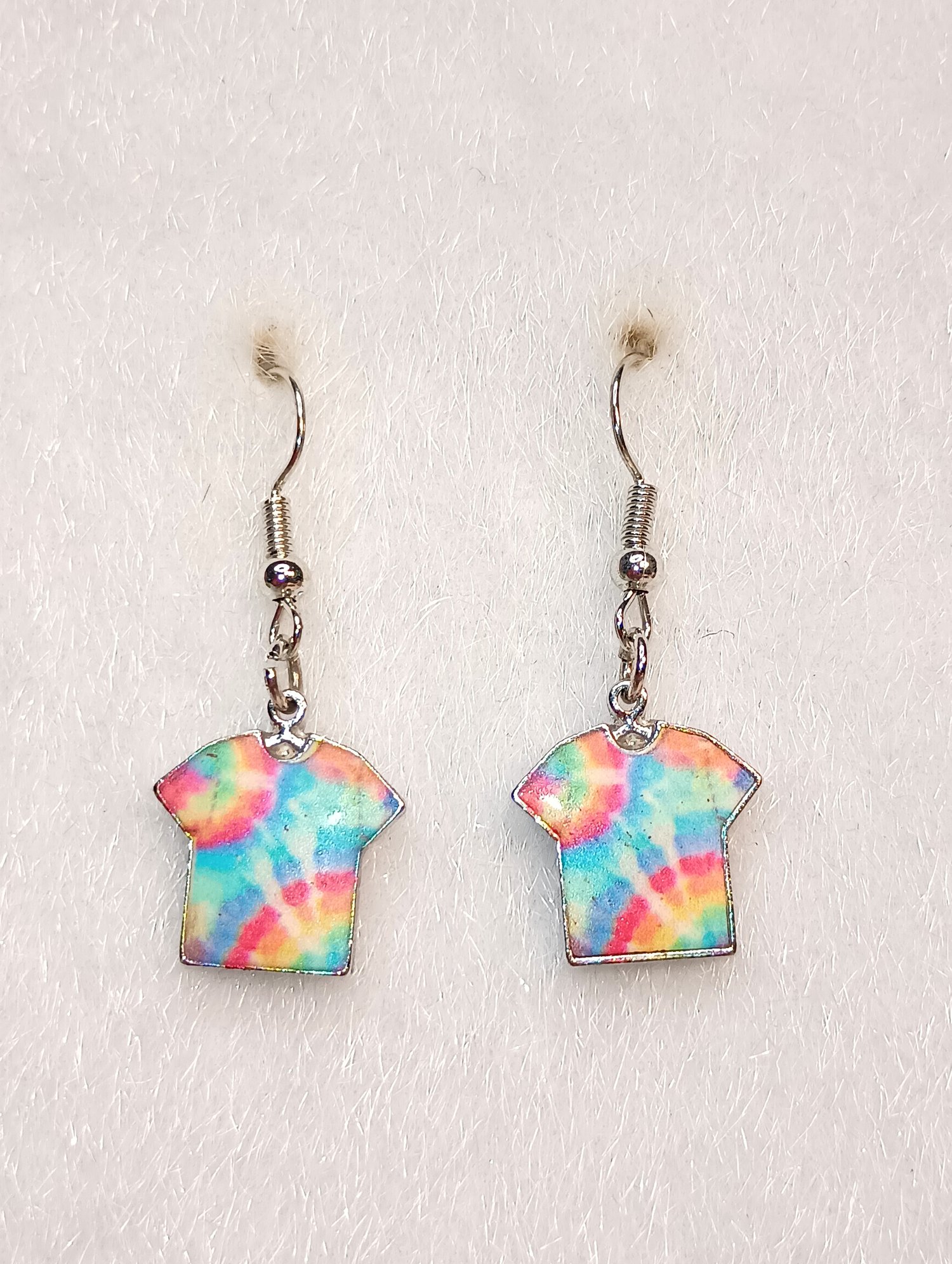 Rainbow Enamel Tie Dye Tee Shirt Earrings