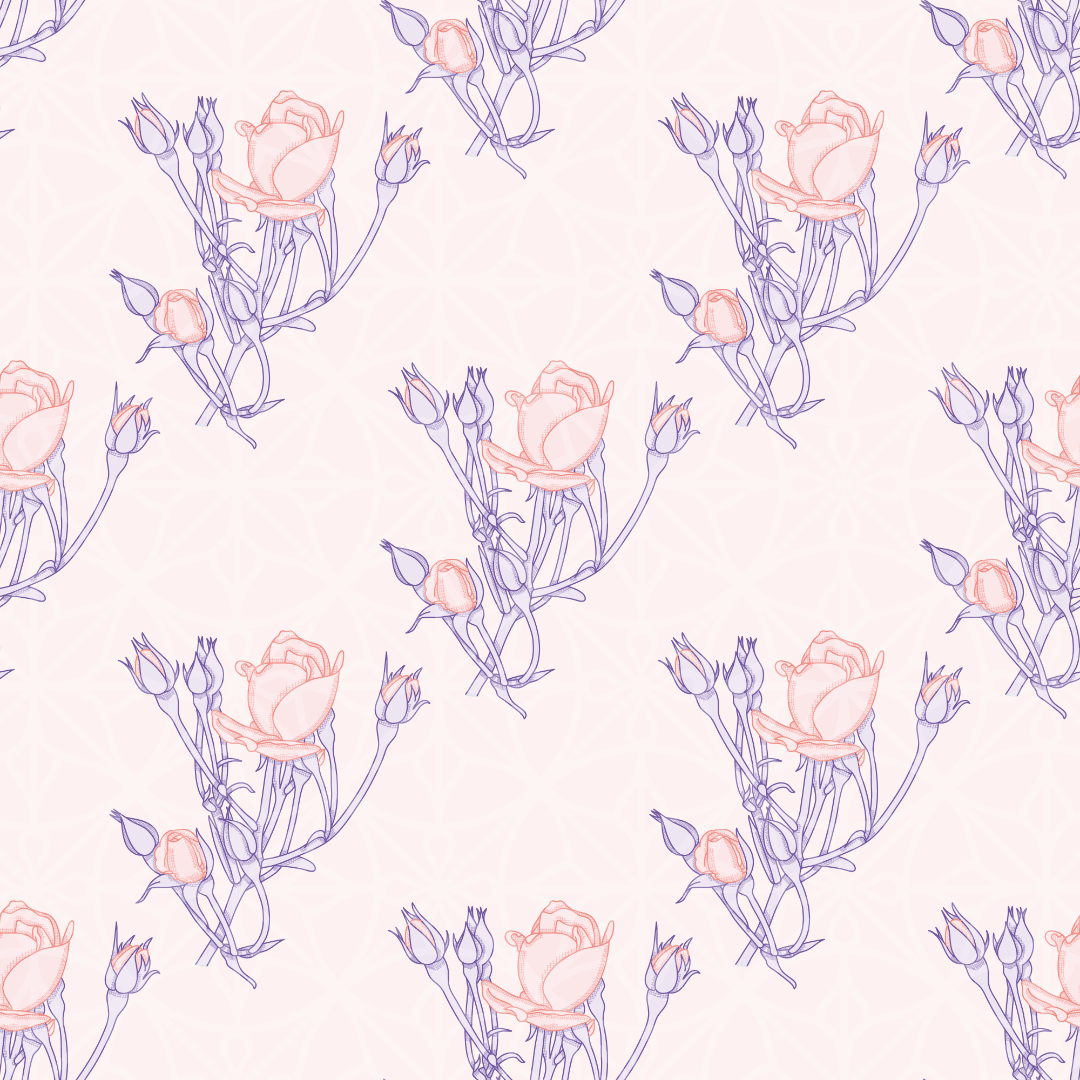 Rose buds vector repeating pattern. Botanical line seamless illustration background.