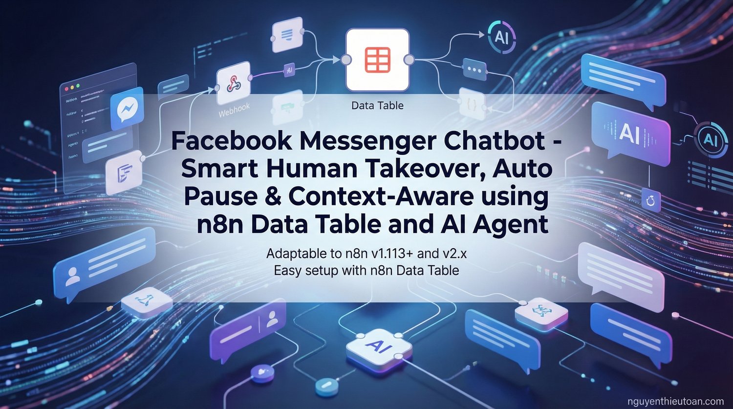 n8n Workflow Facebook Messenger Chatbot - Smart Human Takeover, Auto Pause & Context-Aware using n8n Data Table and AI Agent