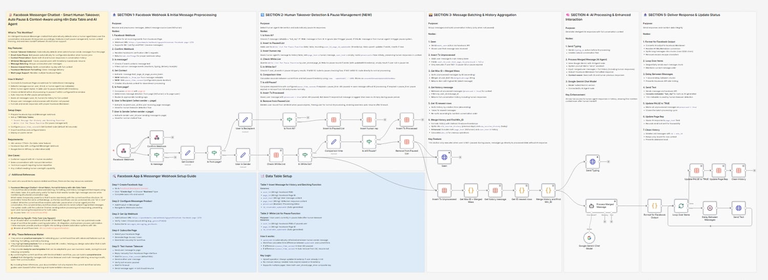 🤖 Facebook Messenger AI Chatbot – Smart Human Takeover & Auto Pause (n8n Workflow)