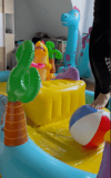 In dem Video siehst du mich in einem bunten Spieleparadies. Ich beschäftige mich mit einem Wasserball und puste ihn mit Atemluft auf, bis er eine beträchtliche Größe erreicht hat. Dann setze ich mich auf den Ball und beginne, auf ihm herumzuhüpfen. Ich genieße die Freude und das Vergnügen, welche das hüpfen und reiten mit sich bringen.