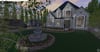 - Landscaping: A beautifully manicured front yard showcases a circular fountain surrounded by colorful flowerbeds, neatly trimmed bushes, and lush green lawns.