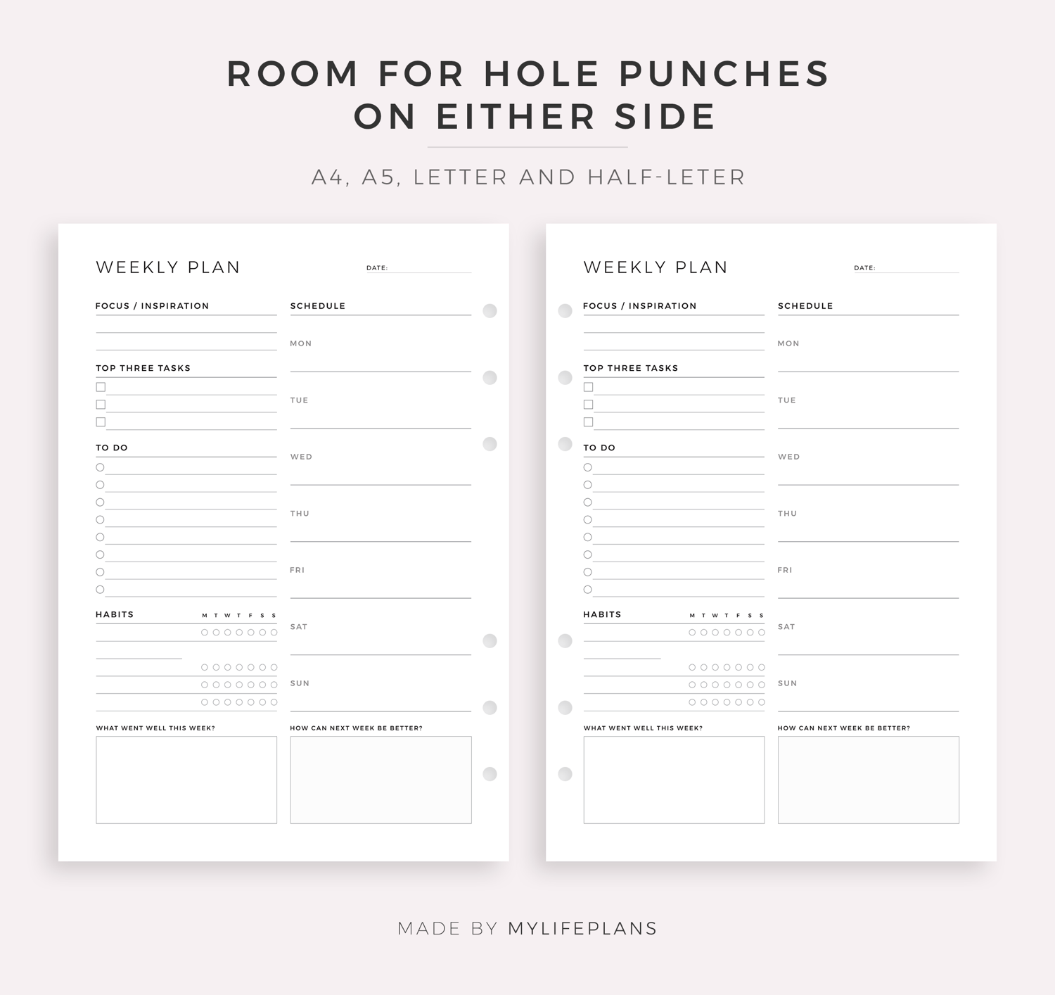 • Includes A4, Letter, and Fillable(A4) planners