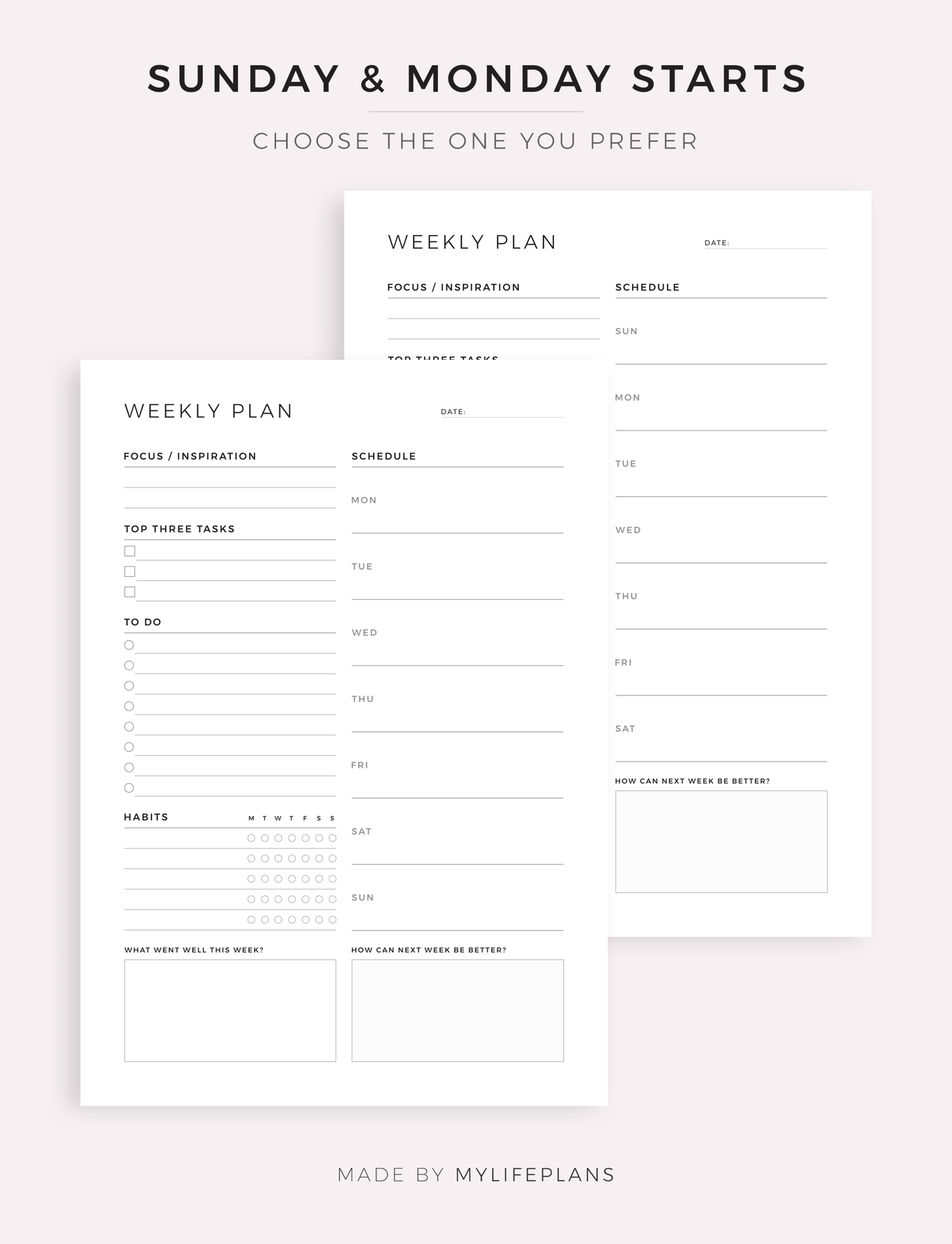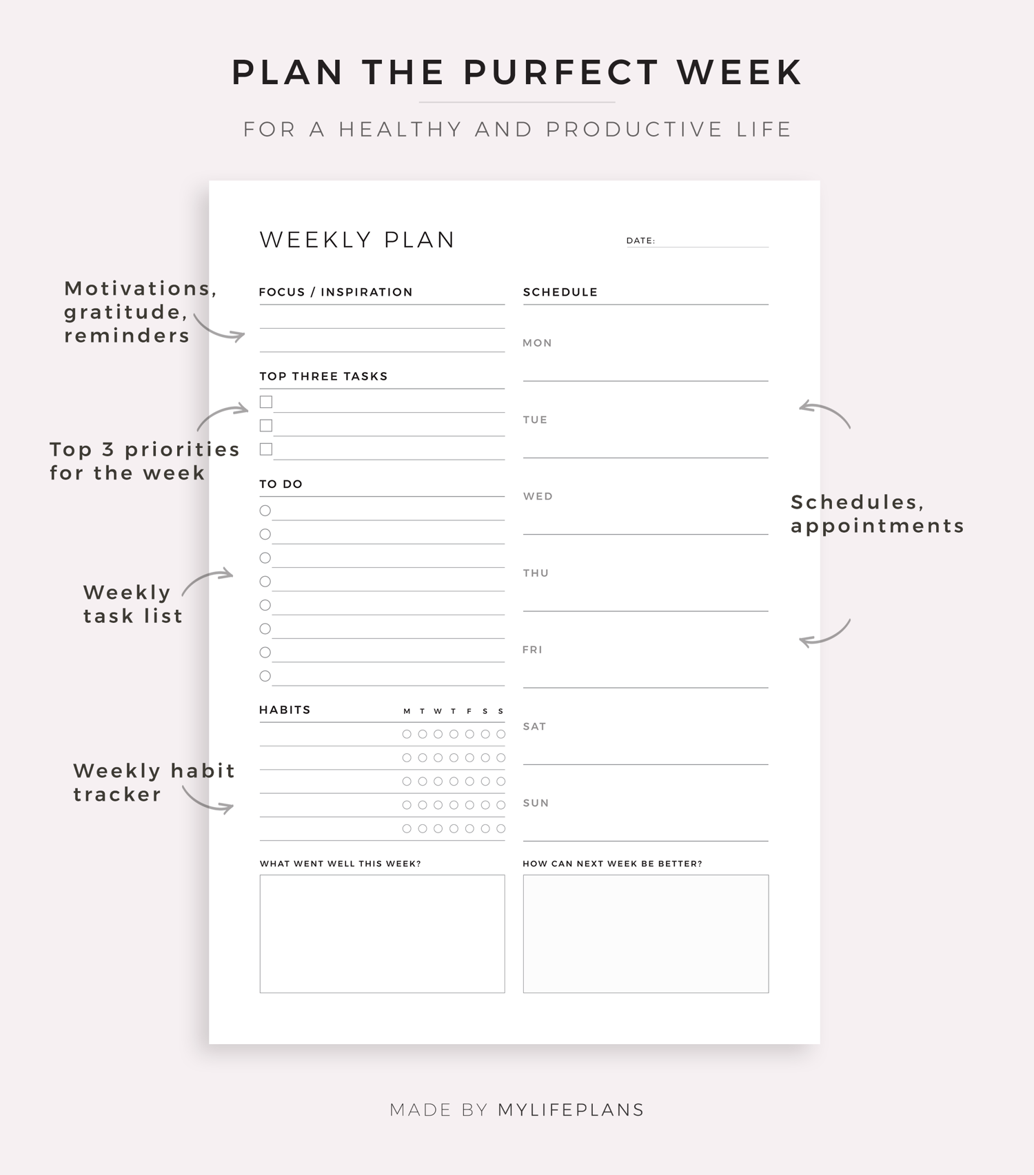 This is a printable weekly planner — just download, print, and start using it right away.