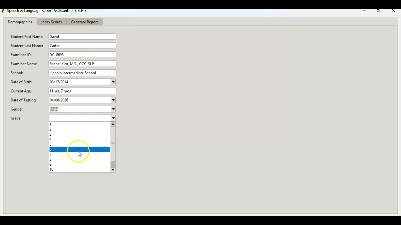 GFTA-3 scoring automation for speech articulation testing. Enter standard scores and the program calculates percentiles and classifications and generates a ready-to-use articulation report section for speech evaluations.