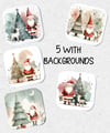 20 whimsical Santas with reindeer. 20 different PNG files, 5 with background, 15 without (separate optional background supplied).