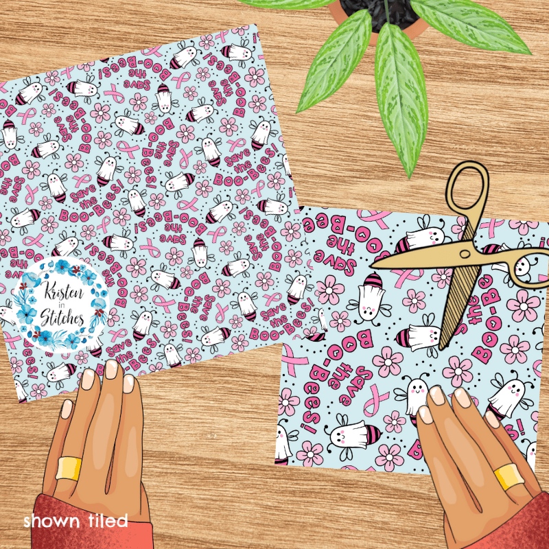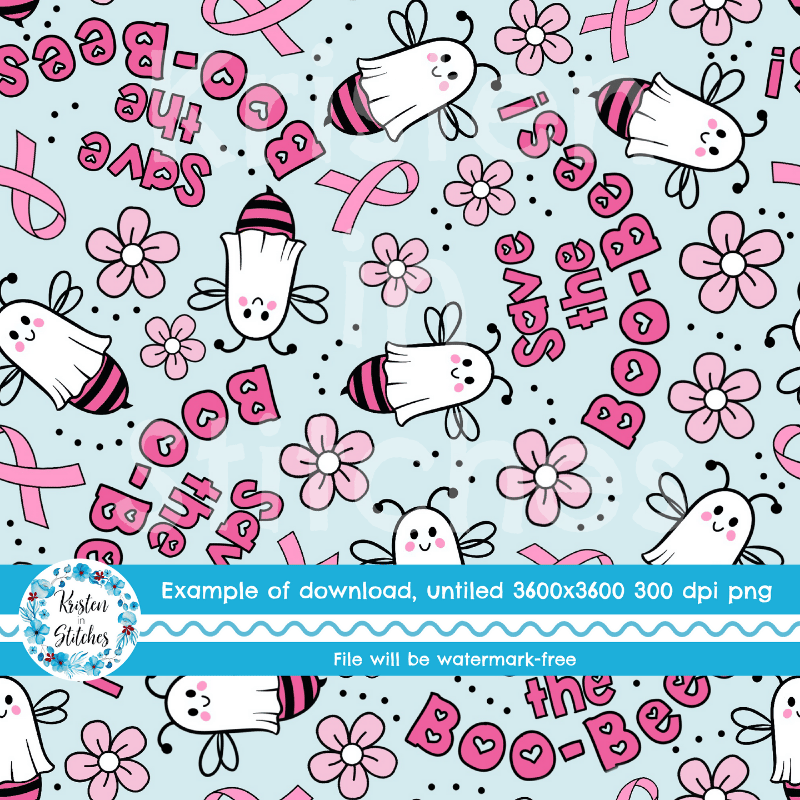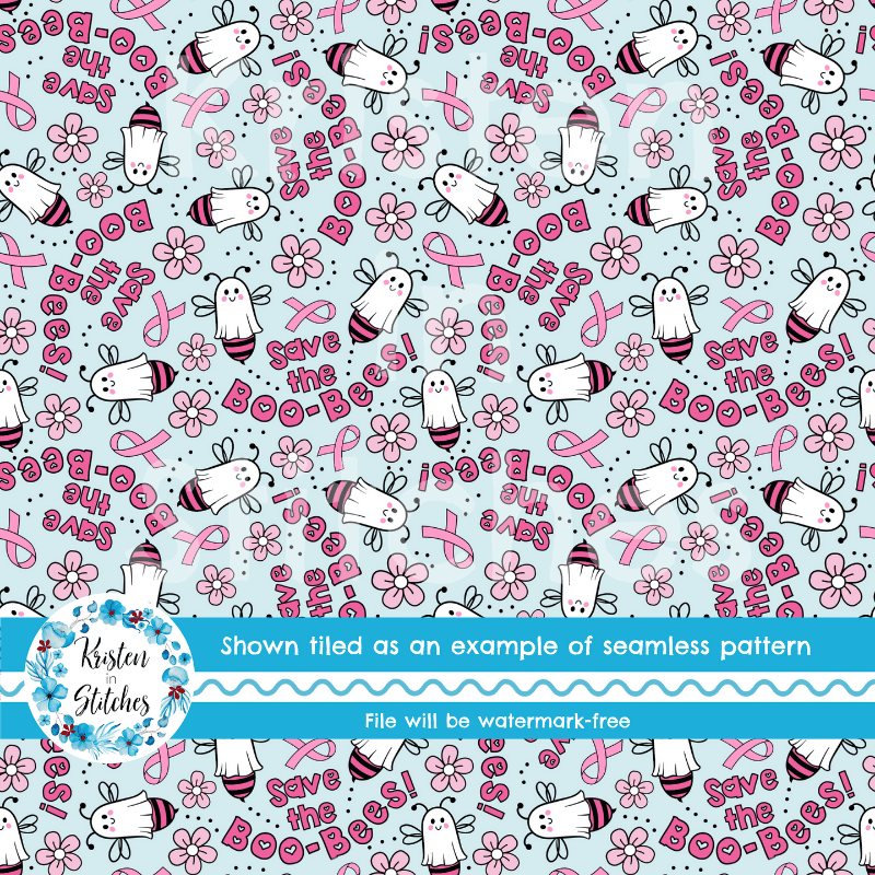 Save The Boo Bees Cute Ghost Bumblebees Breast Cancer Pink Awareness Ribbons Seamless Pattern