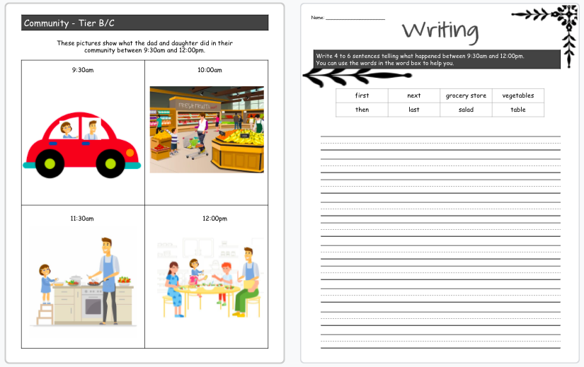 Have your students take a practice reading and writing (tier A& B/C) test after covering your community unit.