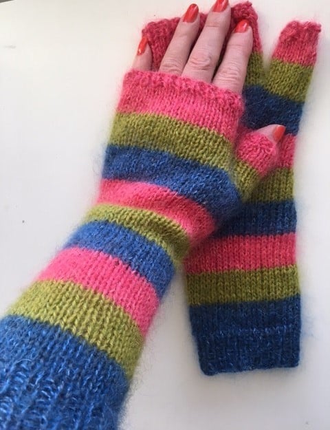 🇸🇪 Stickmönster till Feliz Mitts fingerlösa vantar finns att ladda även på svenska.