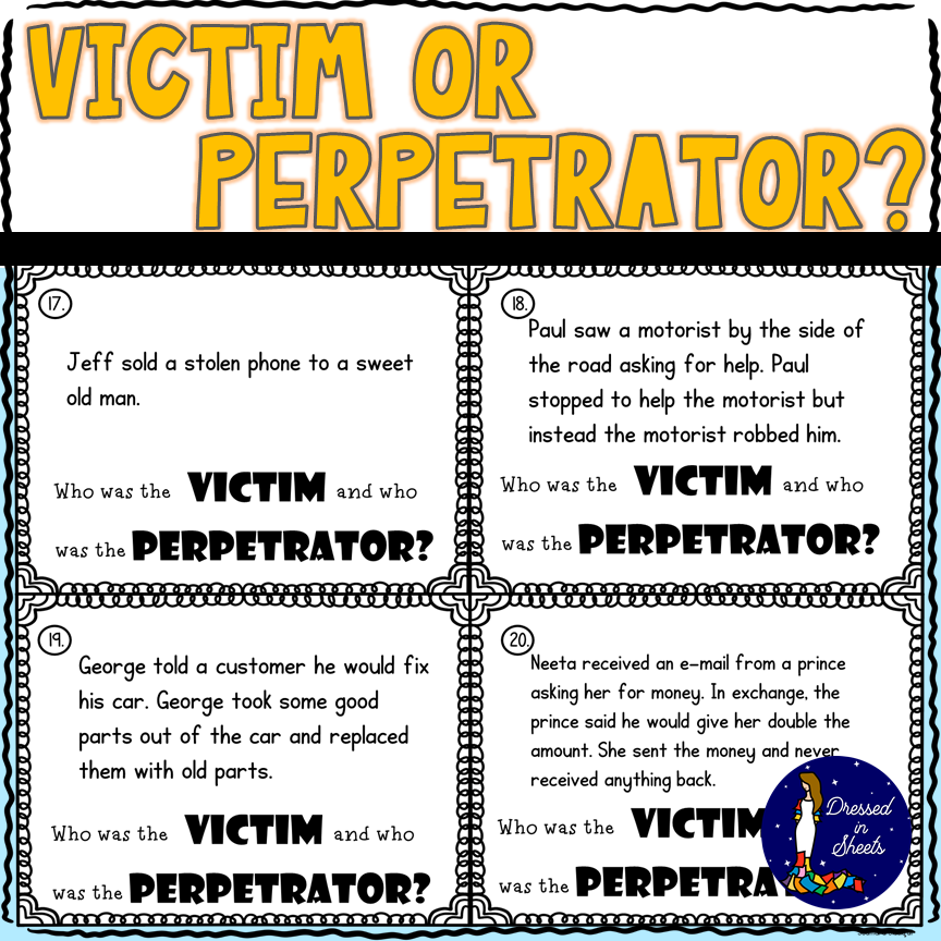 Students will read each scenario and assess who is the victim and who is the perpetrator.