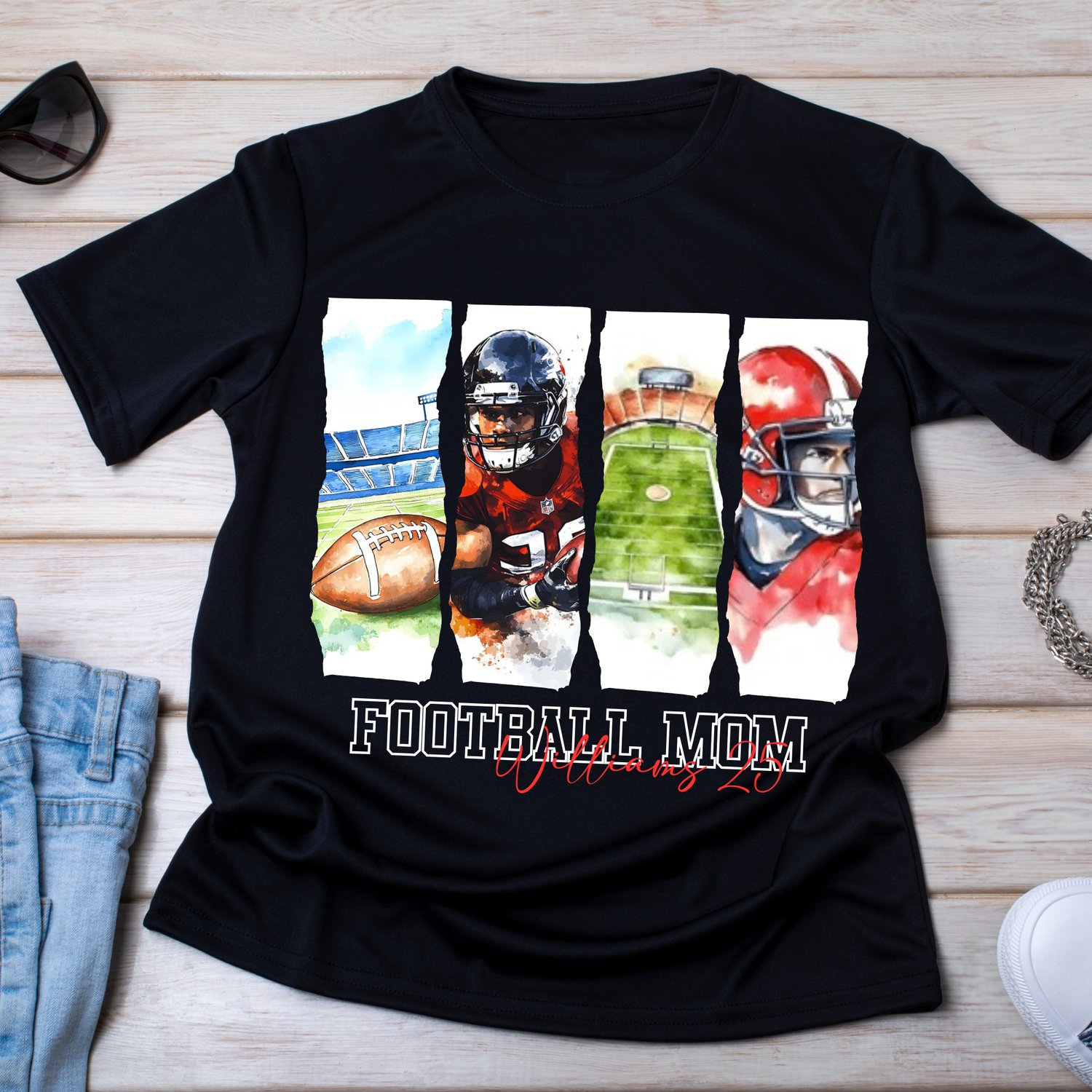 Football Mom Shirt Design | Editable Canva Template | Game Day Spirit Wear | Custom Jersey Number & Name | DIY Printable T-Shirt Graphic