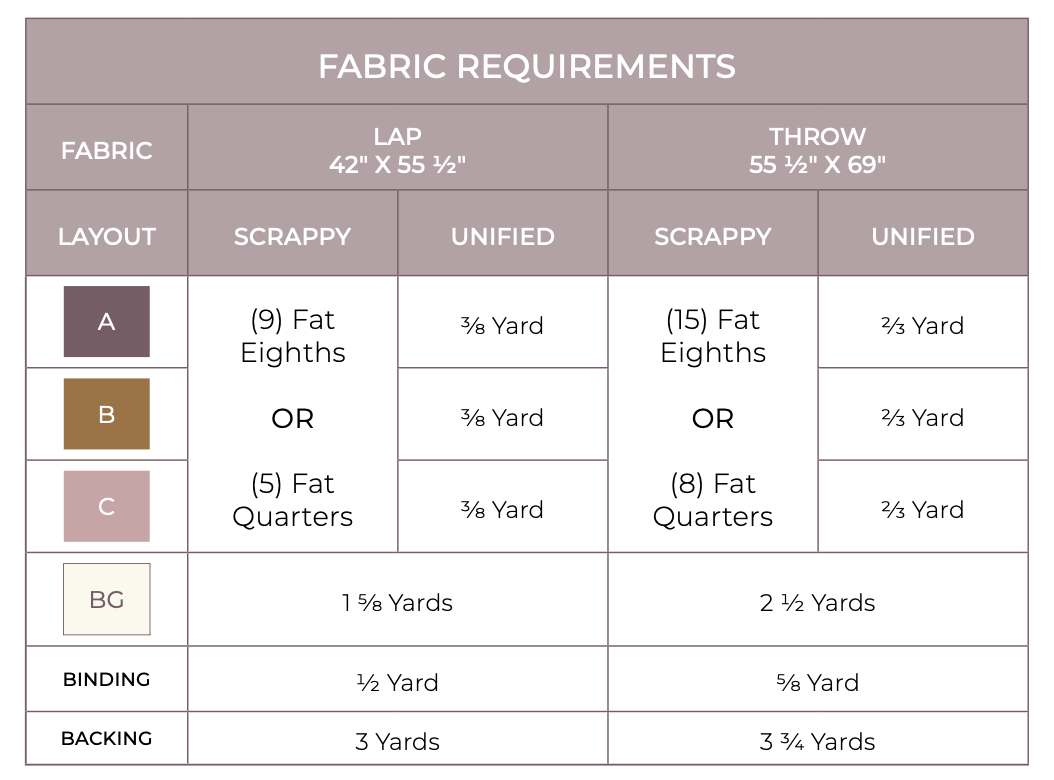 • Grab fat quarters or fat eighths for a scrappy, colorful vibe