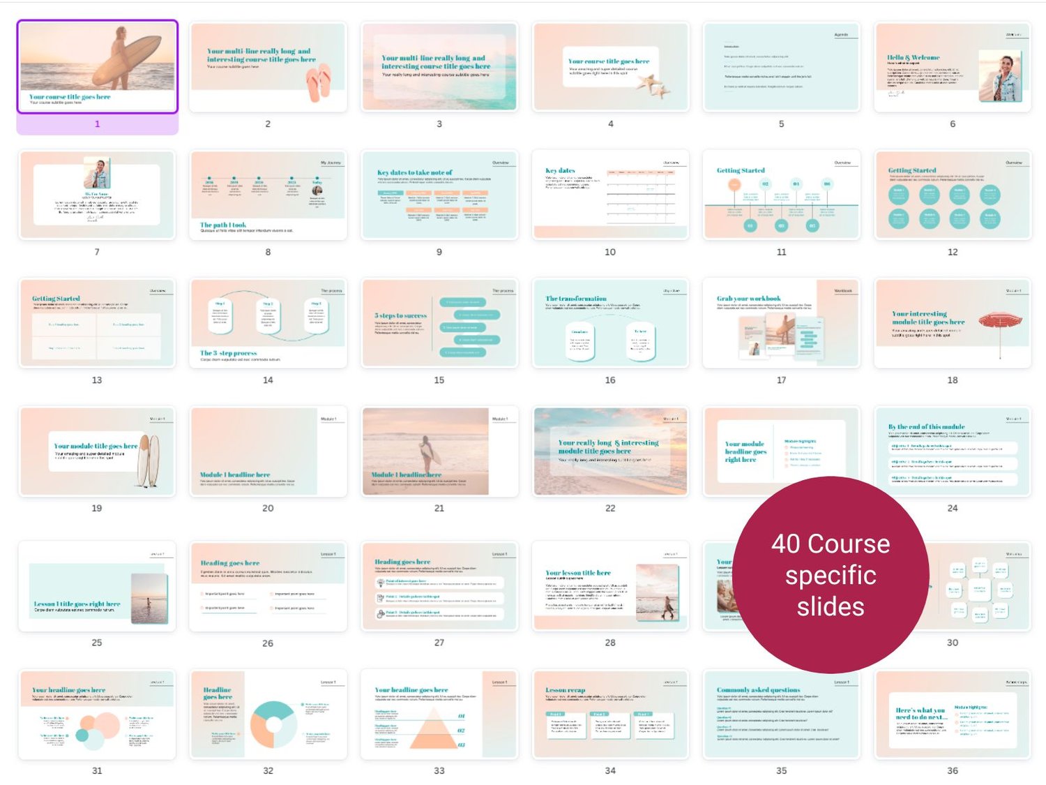 - 40-slide Canva Pro Slide Deck template. Includes slide designs for module/lesson objectives, overviews, processes, graphs and many more…