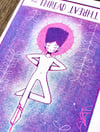 Reversible riso zine with two stories: The Thread The Threat by VIU and En Esta Noche by Luna Pan with fear and anxiety as inspiration sources.