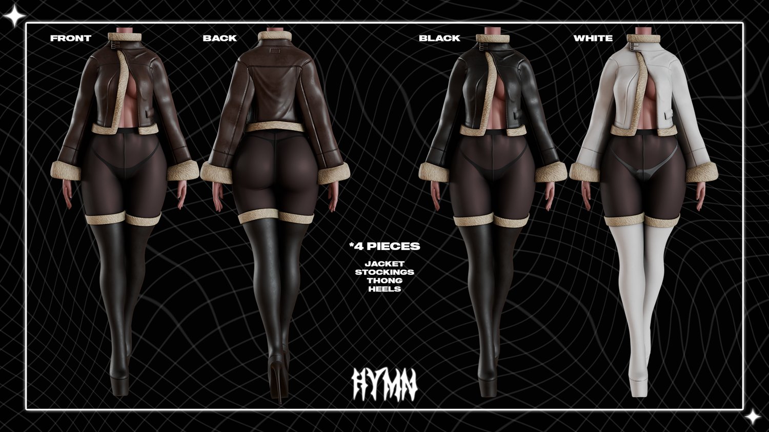 - 3 Custom Texture Variations for Jacket, 2 For Thong & Heels, 1 for Stockings, & Their Maps