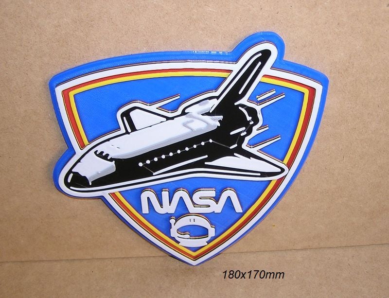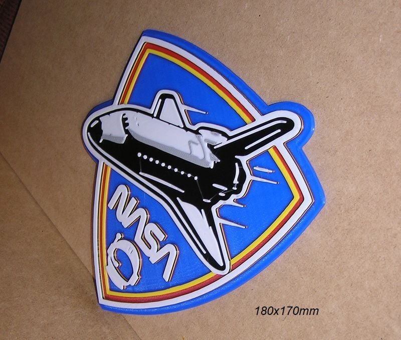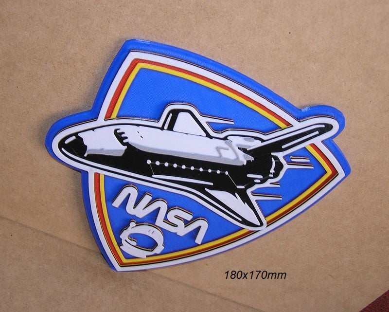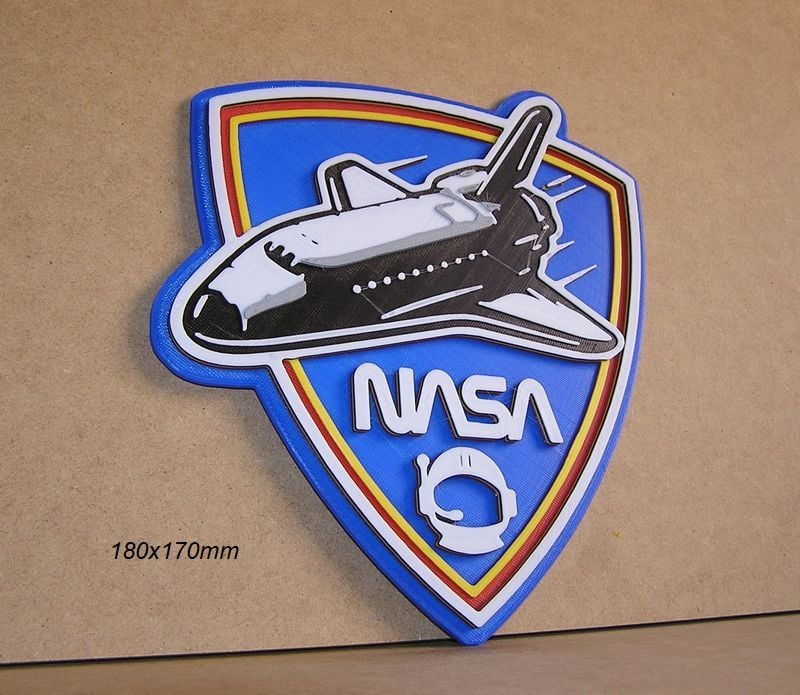 NASA shuttle logo shield, These STL and Gcode files have been created to be printed in various colors with any FDM type printer. The color changes have been made with the Elegoo Neptune 3 Pro printer, but they can be printed on any printer.