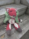 This is a pattern for a knit fox toy and its cloak. It is worked in parts in the round and flat using the instarsia technique. Included is the written instructions plus charts for each element.