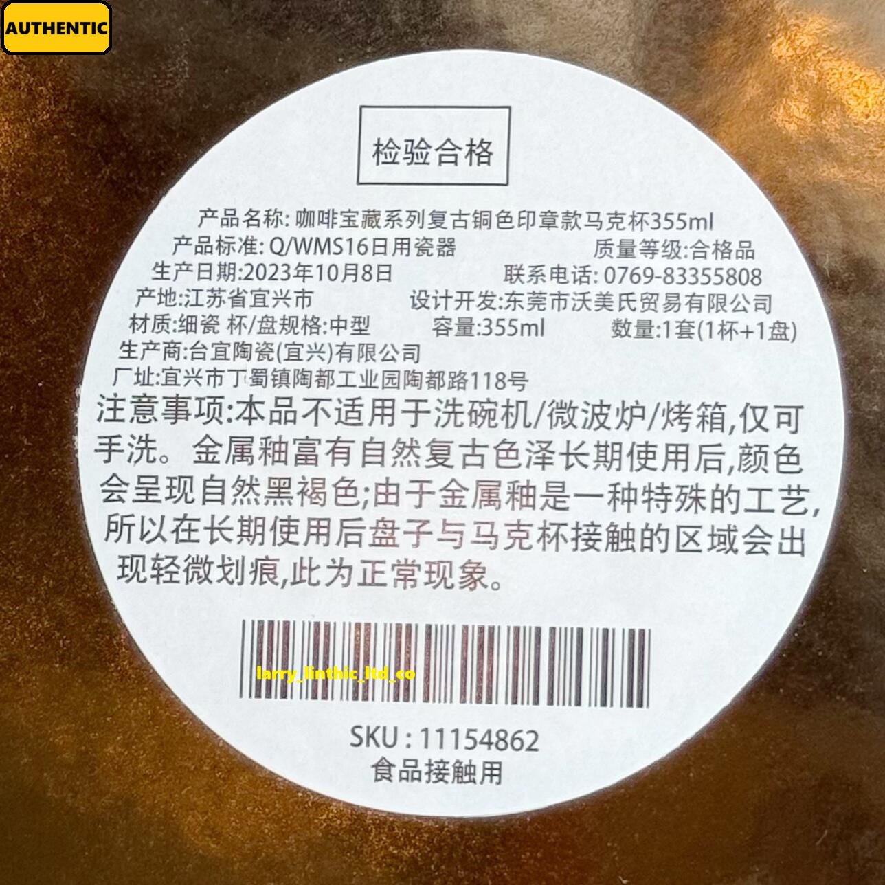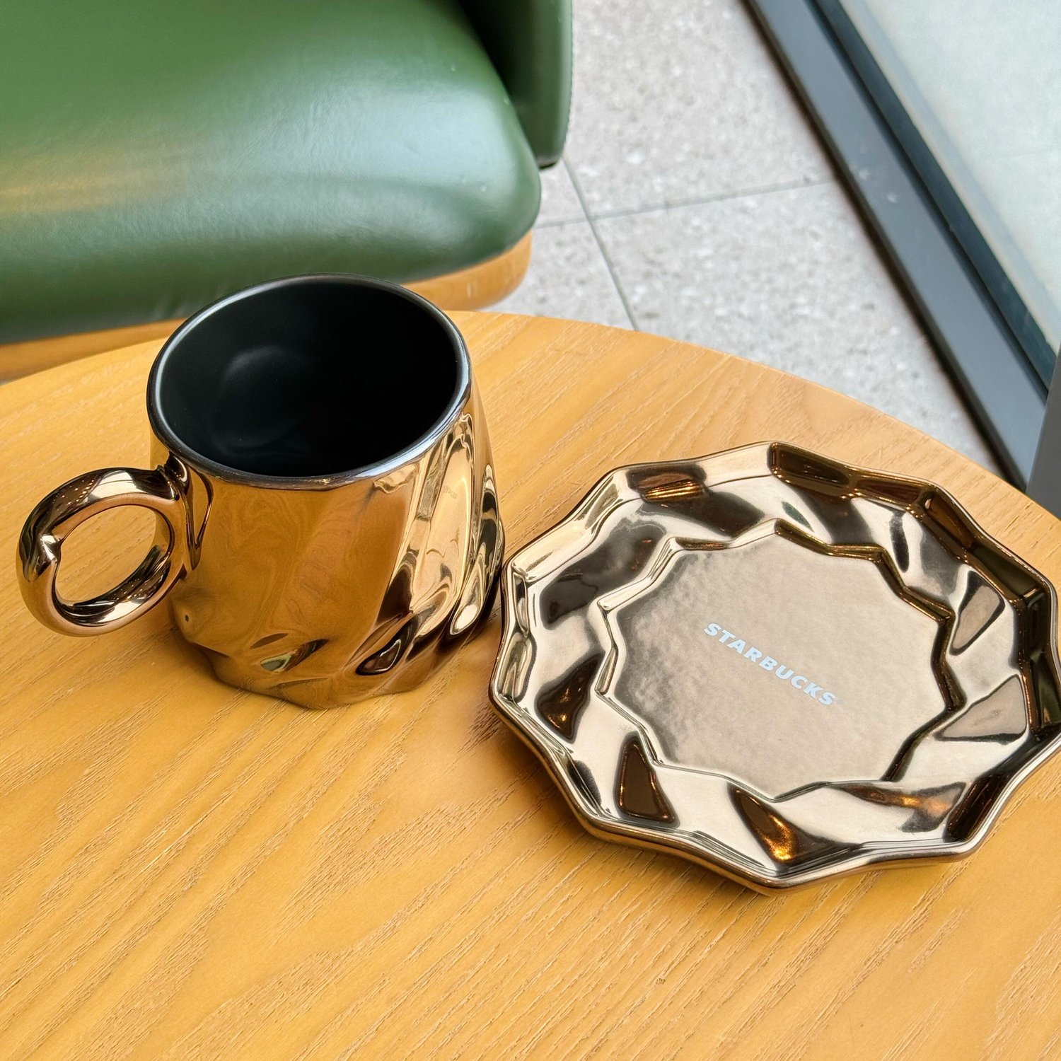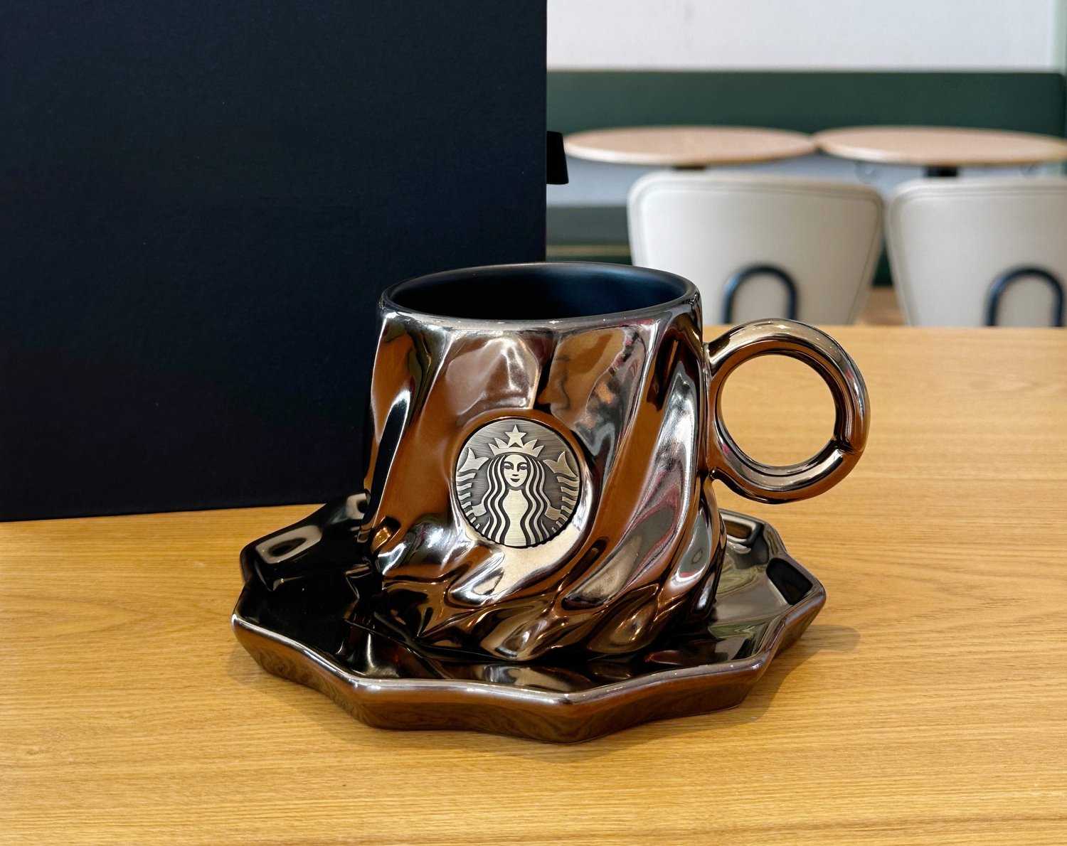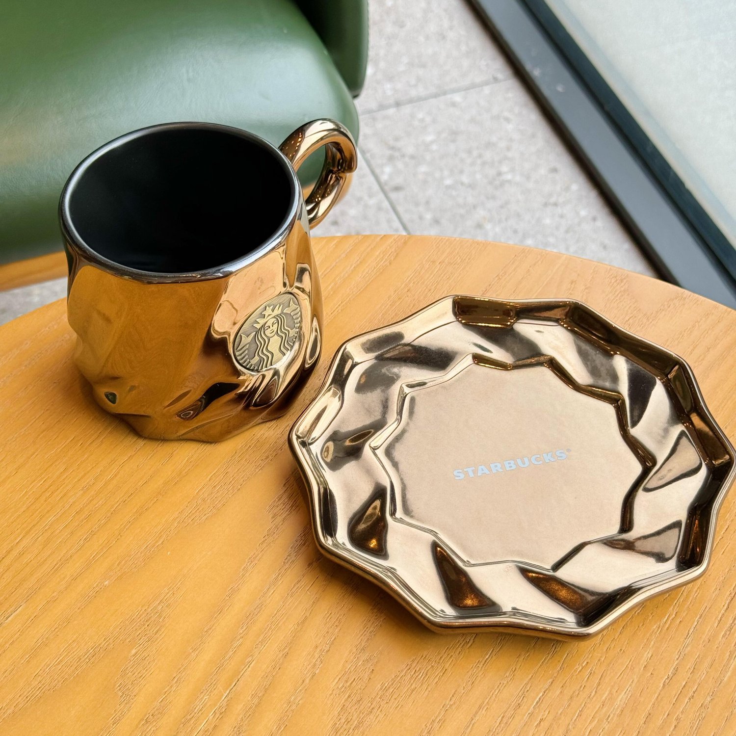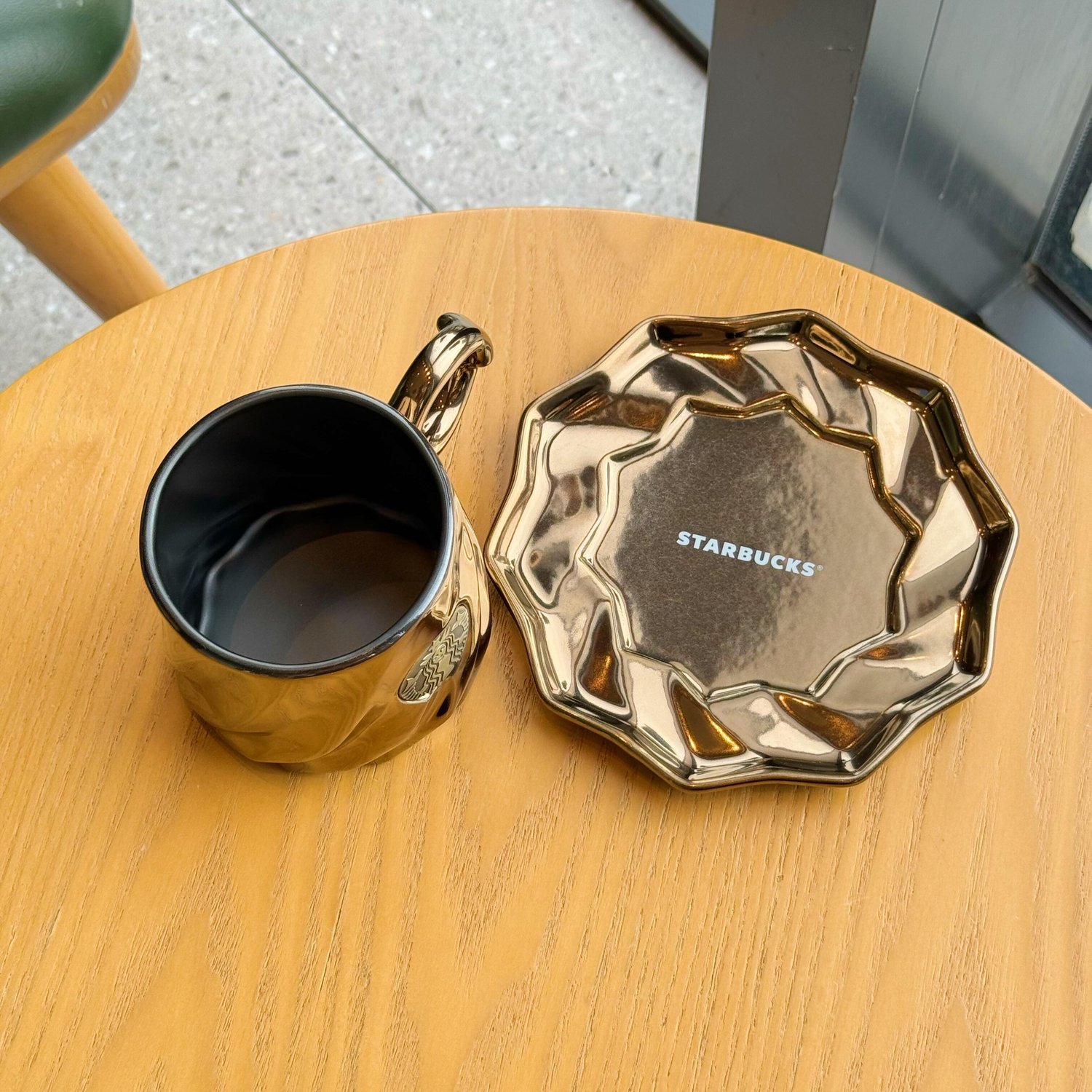 2023 Starbucks China Black-Gold 12oz Porcelain Siren-logo Coffee Mug with Saucer