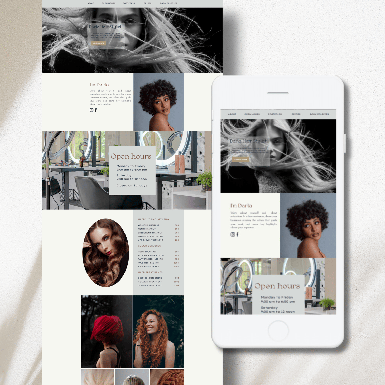 Hairstylist Website Template | Hairstylist Website Template Canva | Acuity Scheduling Website Template | Canva Acuity Scheduling Website