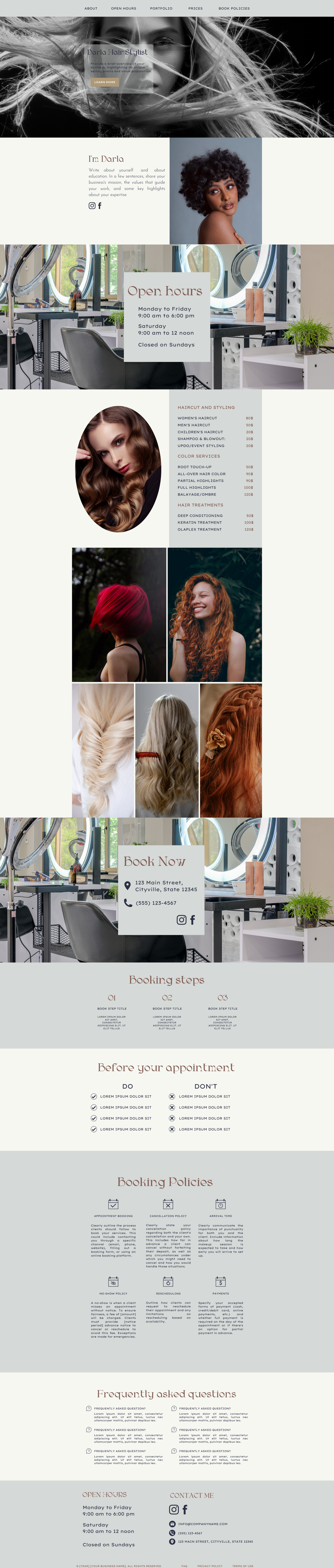 - FAQ: Address common client questions about services, pricing, and salon policies.