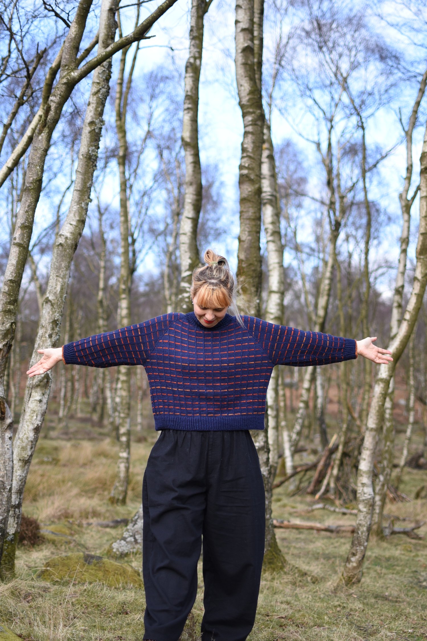 This is an oversized fit, top-down raglan knitted in the round. It is a customizable fit, adjust the body and sleeve length to your liking, but consider to have a little extra yarn.