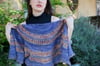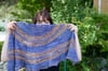 Viridiana is a half-oval shawl that combines the classic Pi circular construction with additional short row increases along the piece.