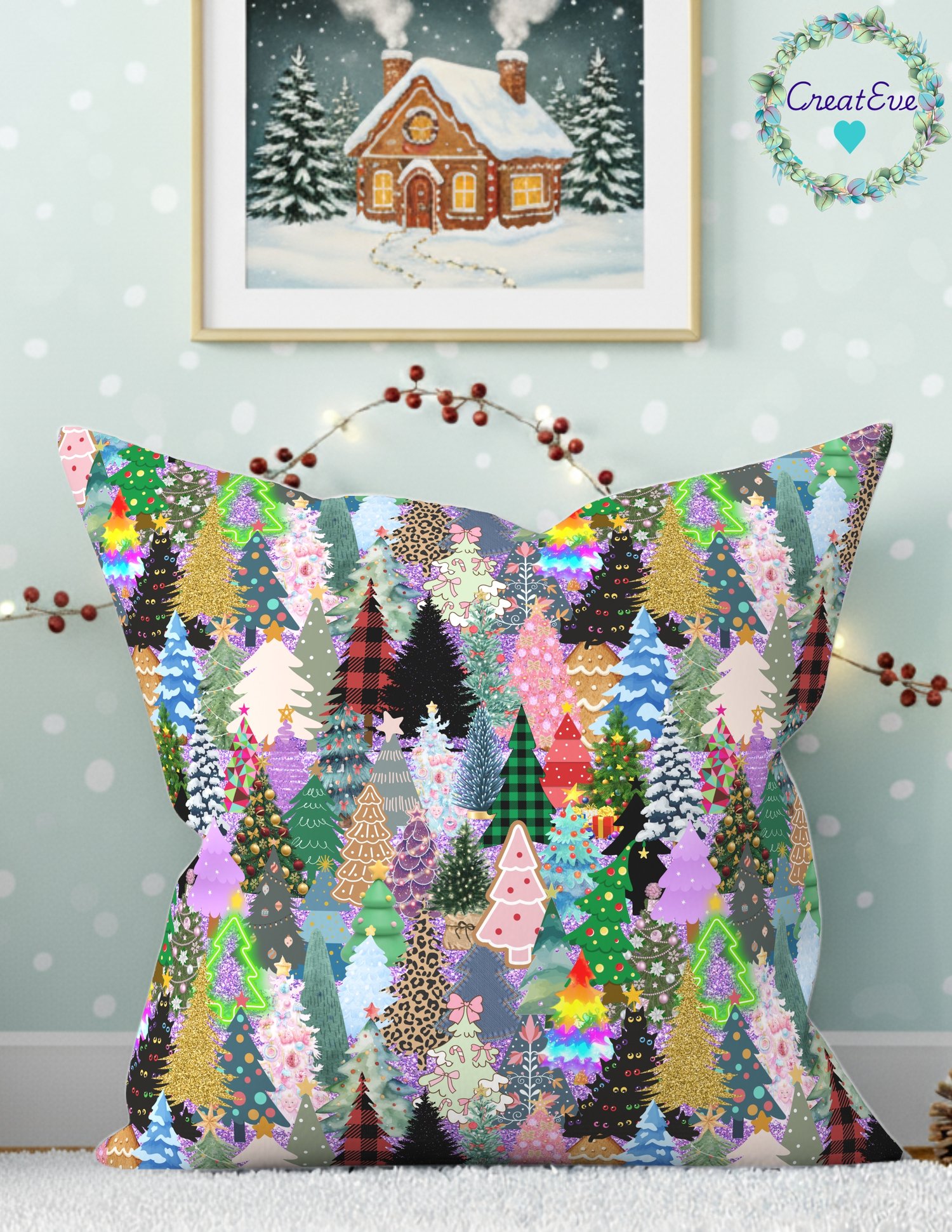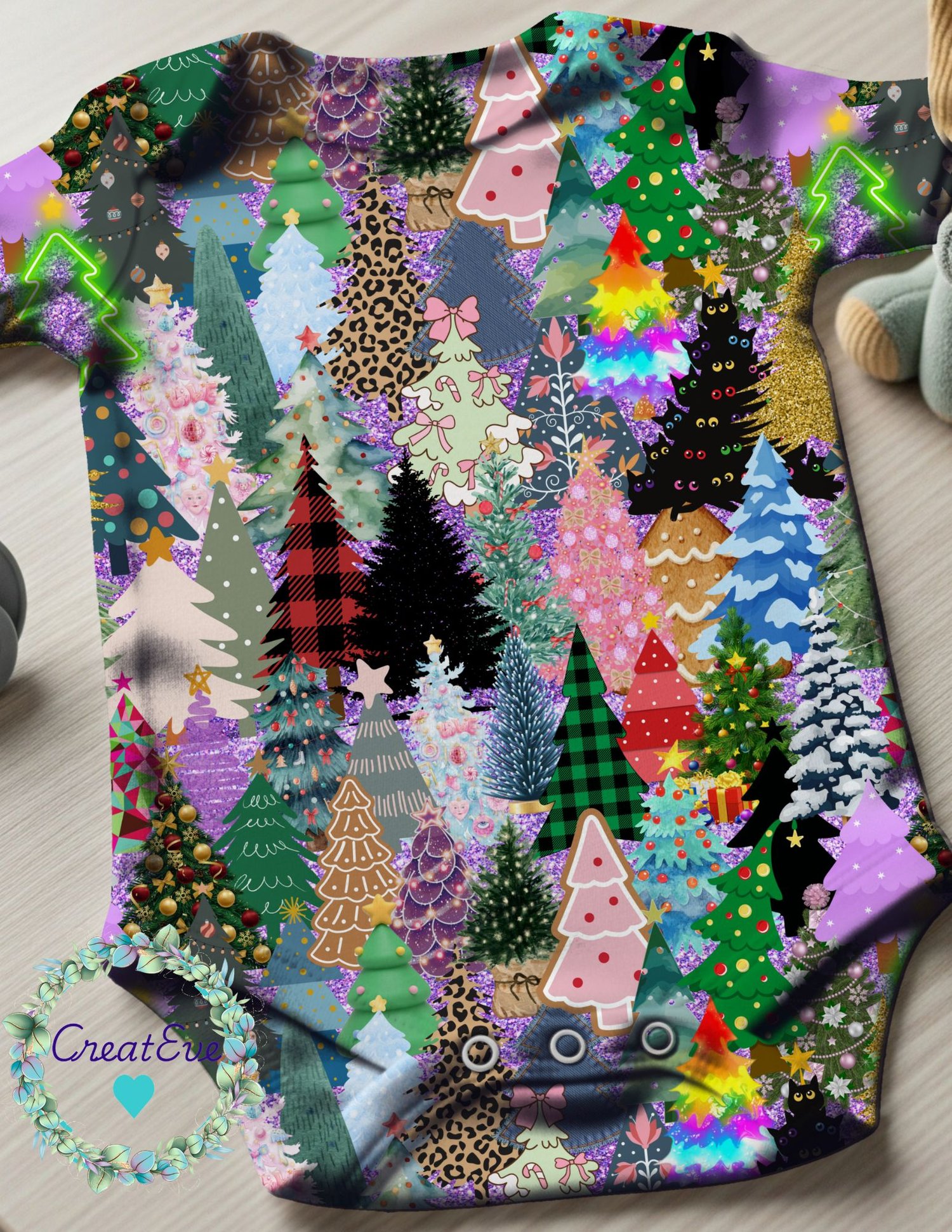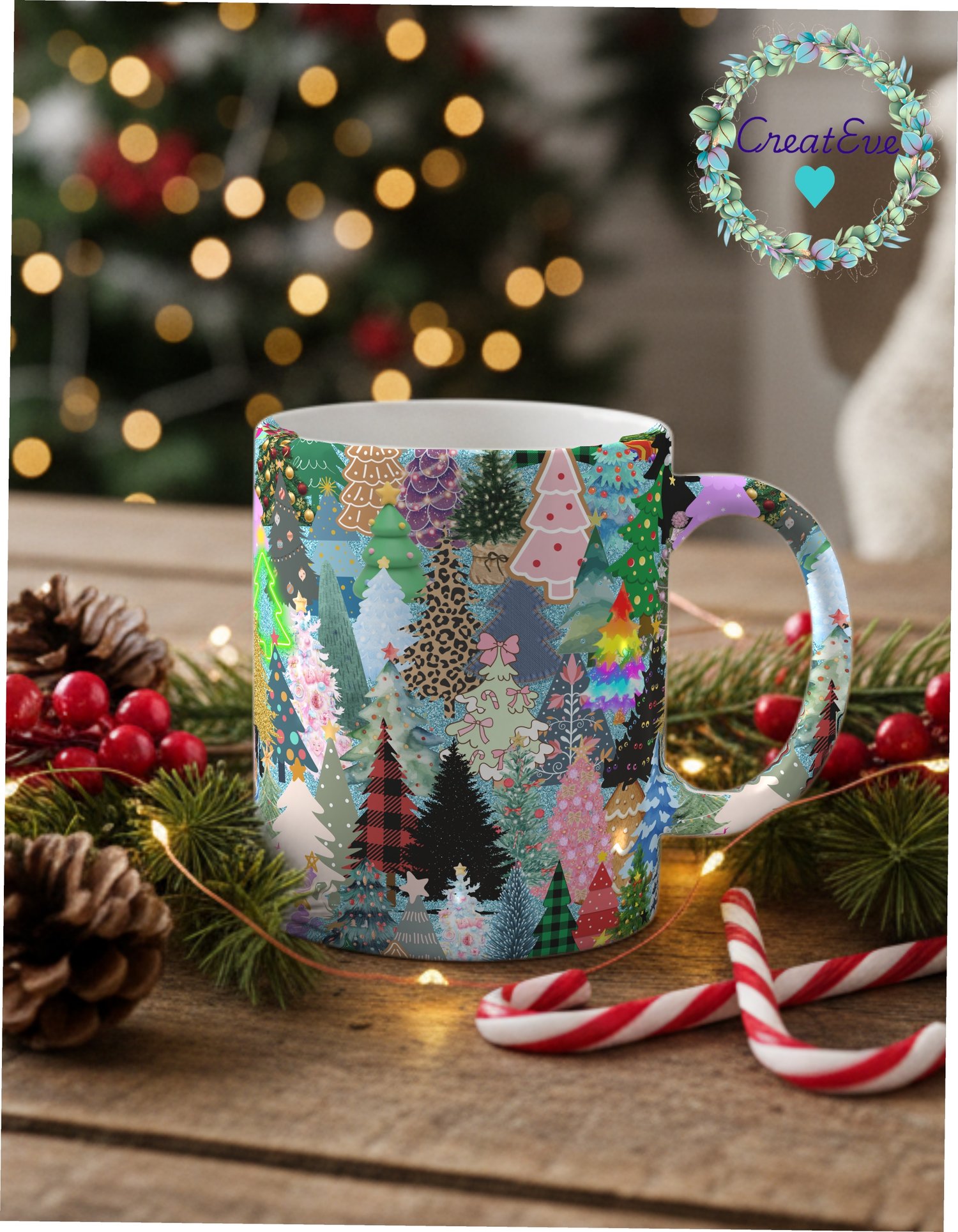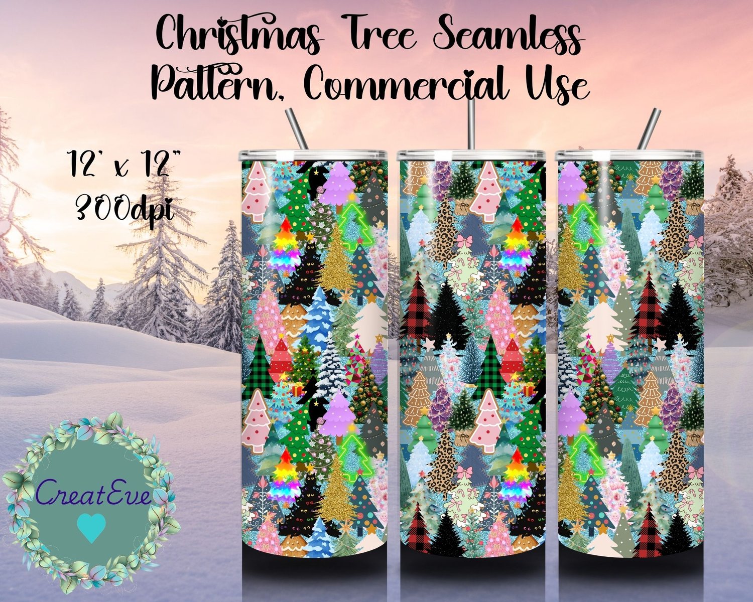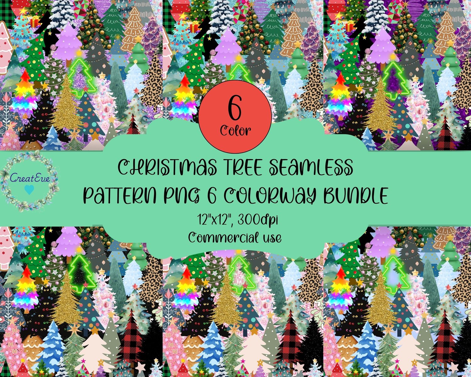 Christmas Tree Seamless Pattern 6 Colorway PNG Bundle, 300dpi, 12" x 12", Commercial Use