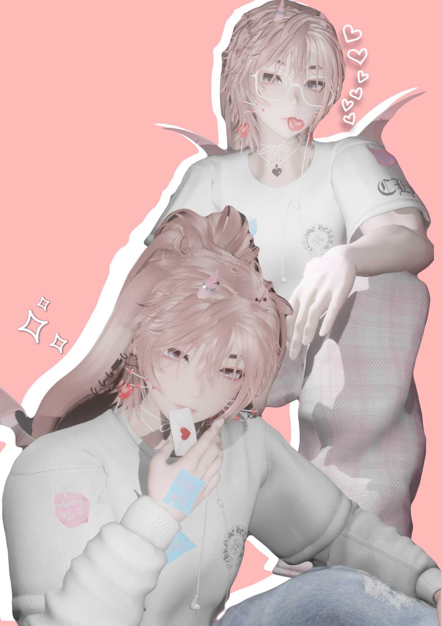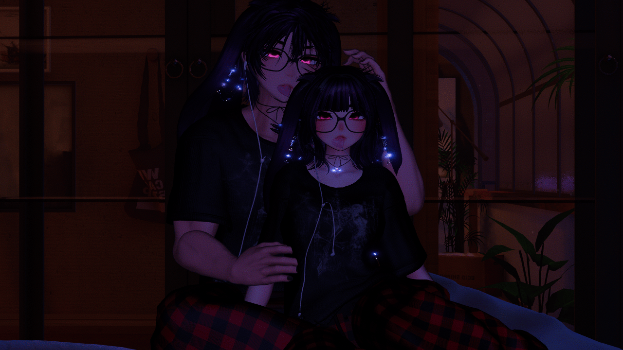 Accessories: Beanie-Suki, Glasses-lovelyslocker, Earrings-AikaVR, Earbuds/Phone-Suki, Lolipop-AikaVR, stickynotes-AikaVR, Love letter-gmsboxvr, choker- teacakezz, whiskers-AikaVR, Nails-Suki