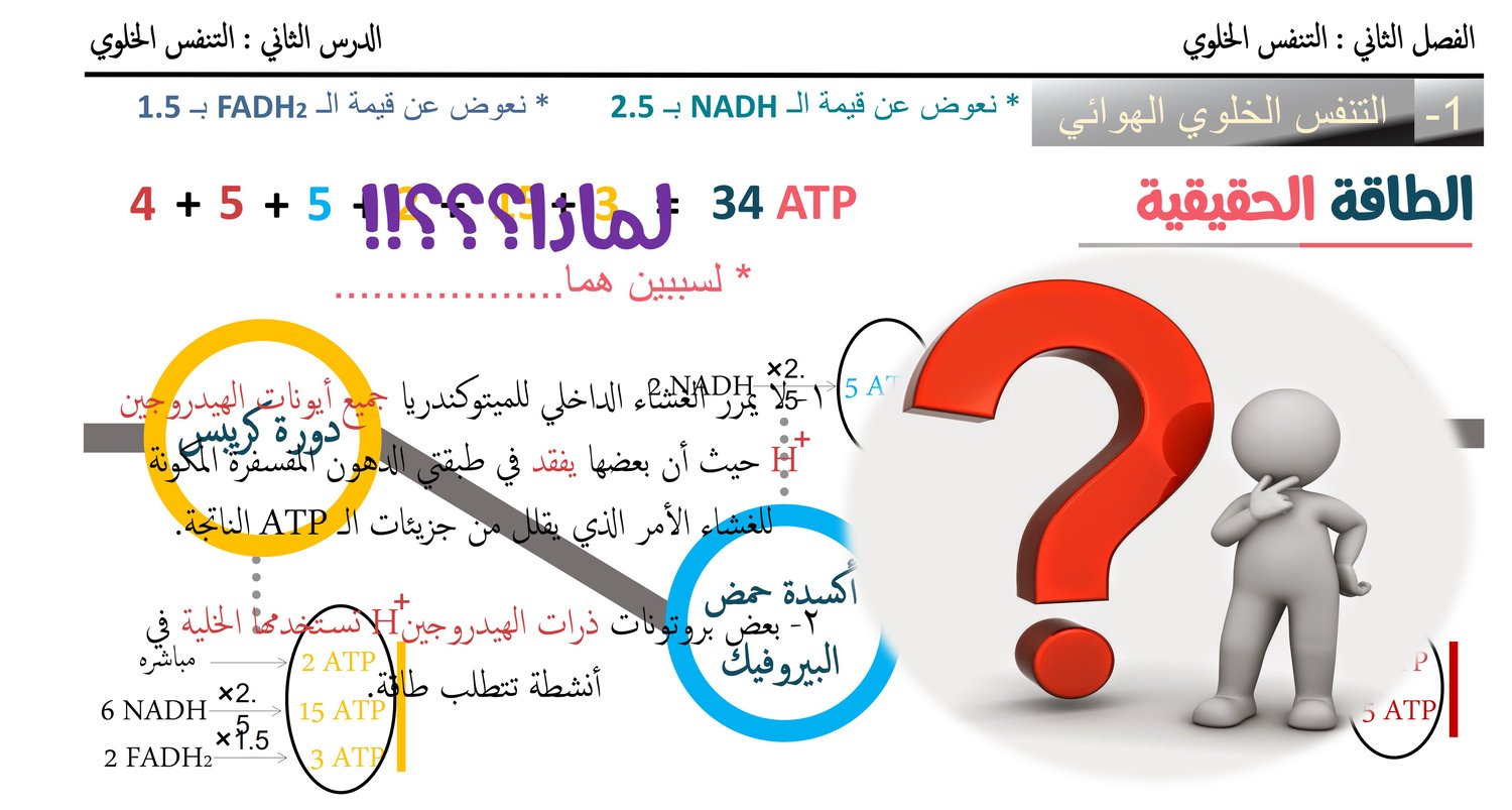 العرض يحتوي على شرح لطريقة حساب انواع الطاقات المختلفة للتنفس الخلوي للصف الثاني عشر