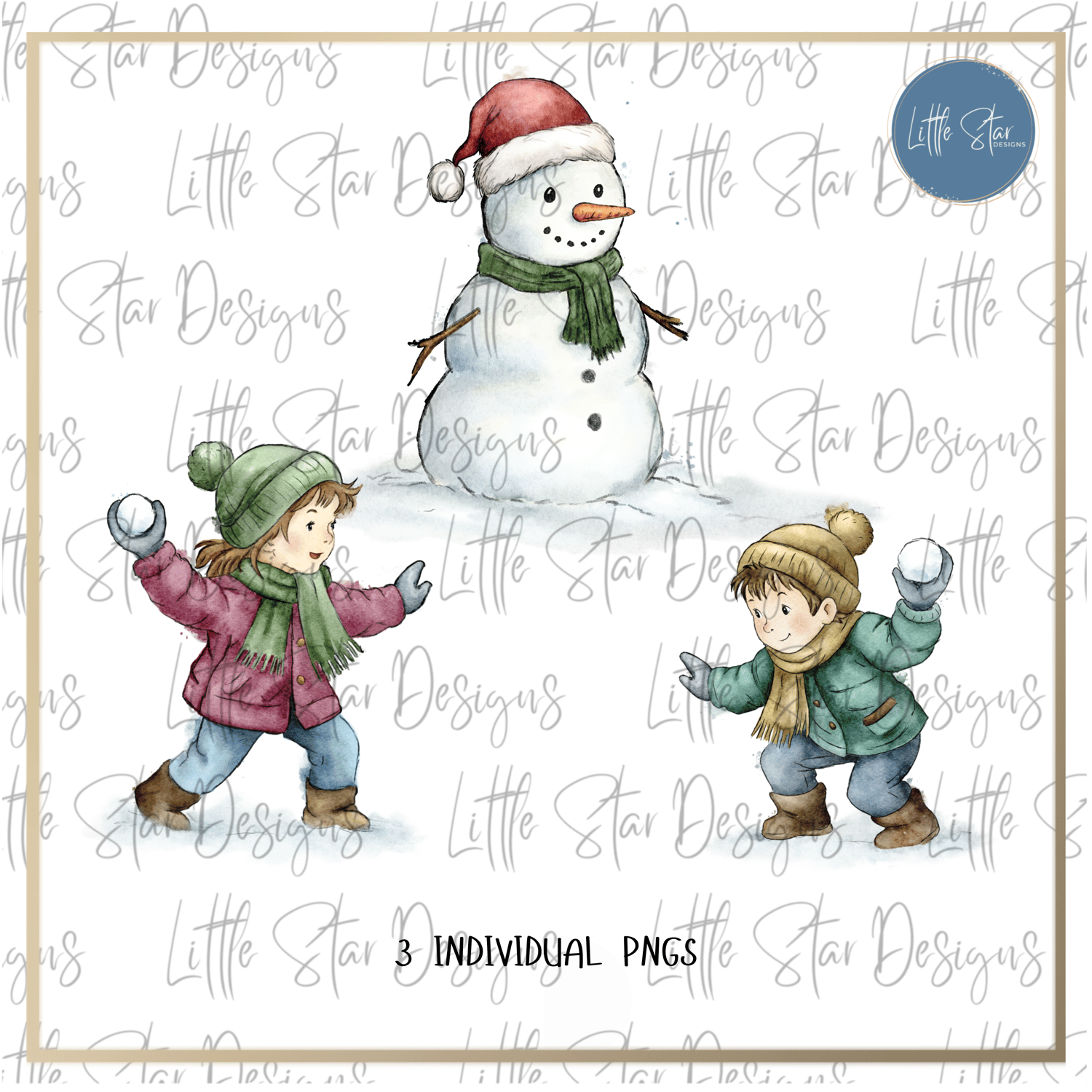 ⭐️ Inky Watercolour illustration featuring a little girl throwing a snowball (1 PNG)