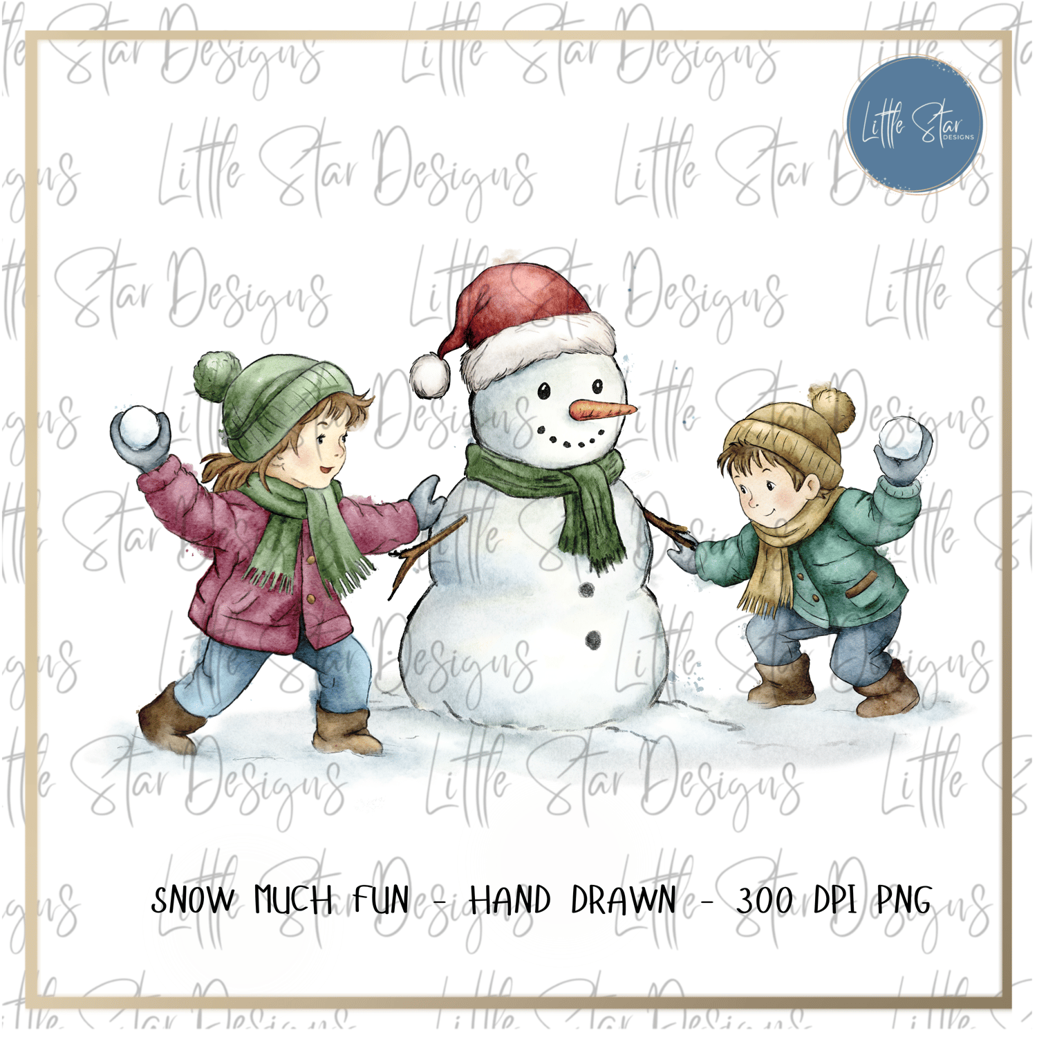This is a high-quality hand drawn (300dpi PNG) digital download of my original artwork, titled ''Snow Much Fun'', designed for sublimation and print.