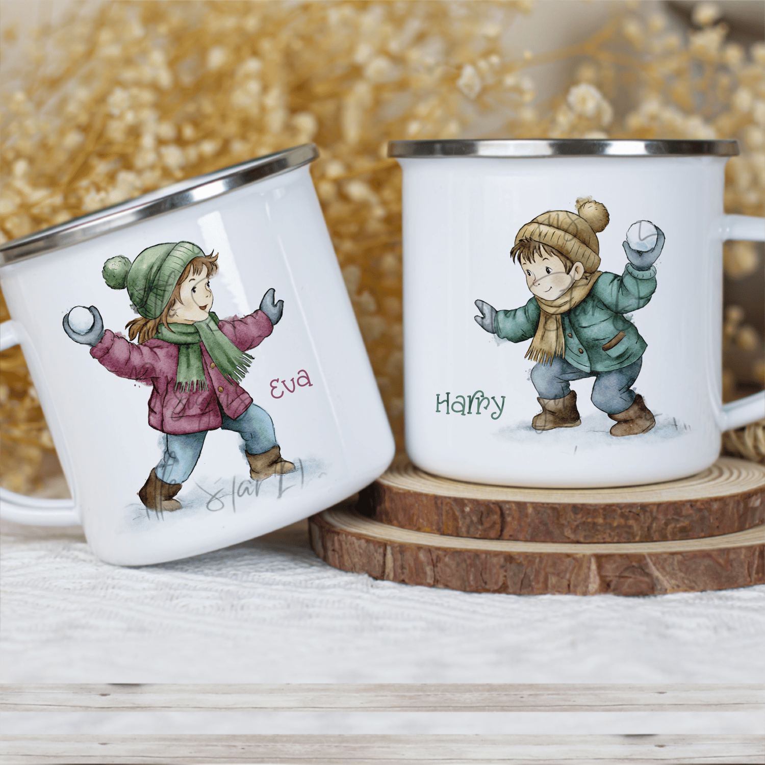 ⭐️ Inky Watercolour illustration featuring a little boy throwing a snowball (1 PNG)